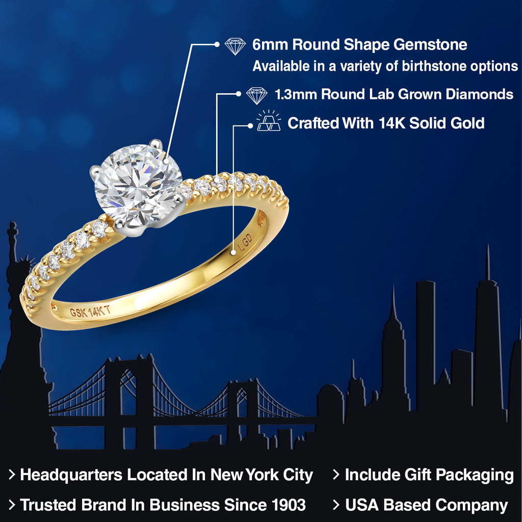 Solid 14K Two Tone Gold White Lab Grown Diamond Solitaire Engagement Ring For Women | 0.9 Cttw | Round 6MM | Wedding Anniversary Gold Ring For Women | E-F Color | VS2 Clarity