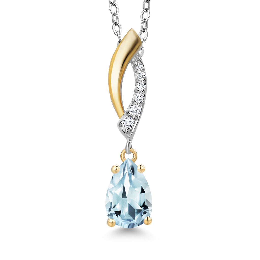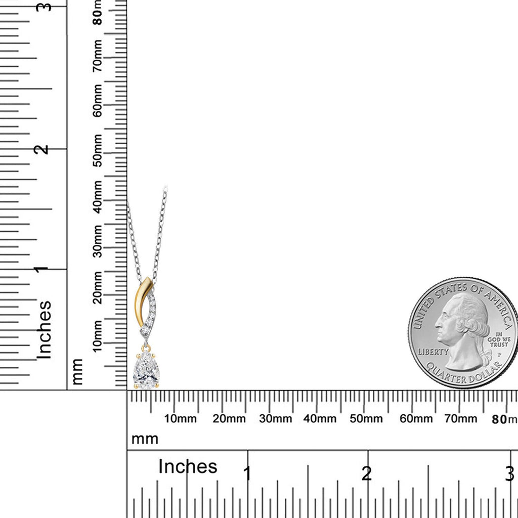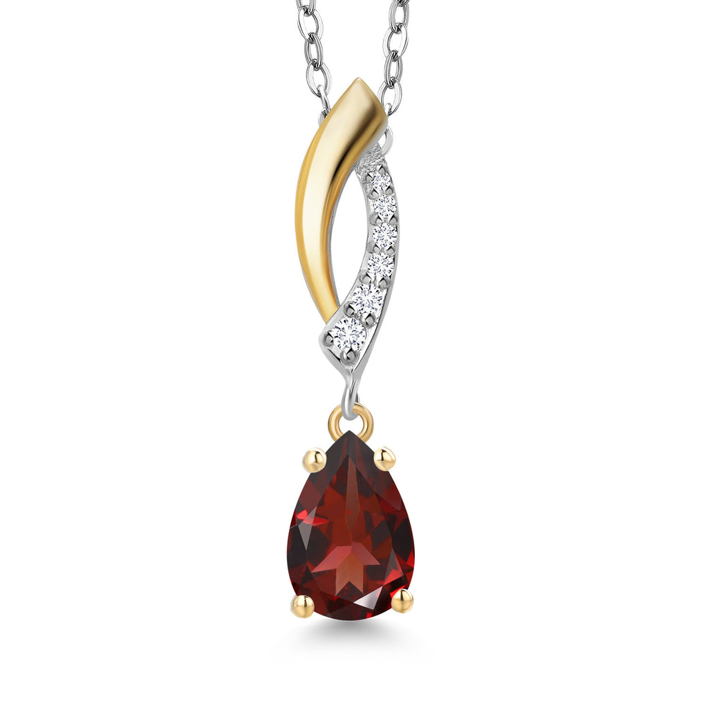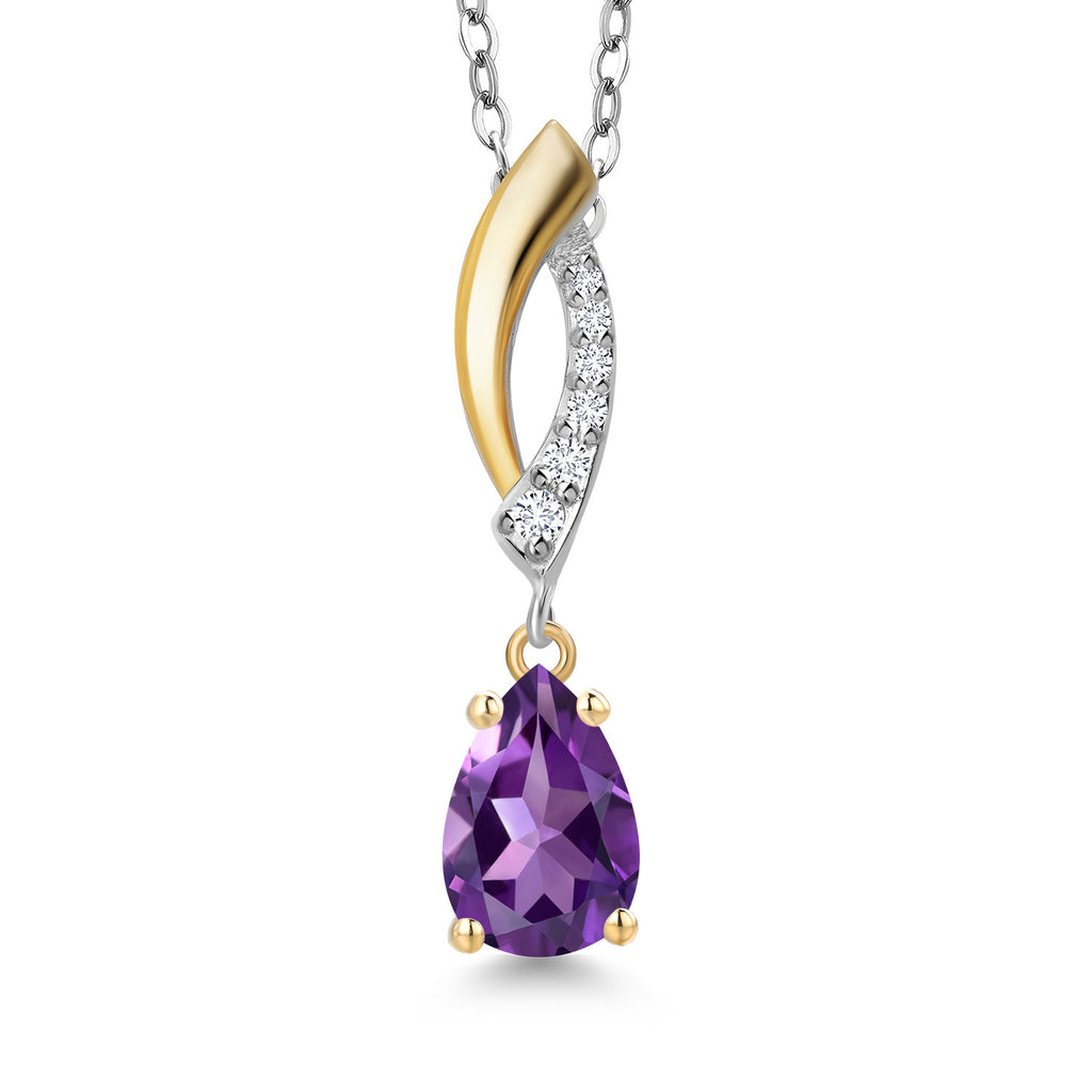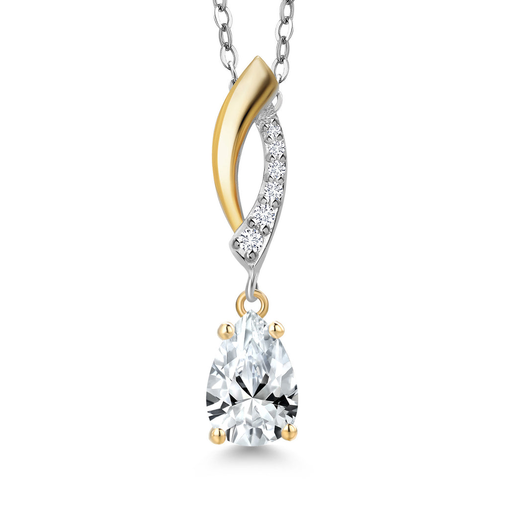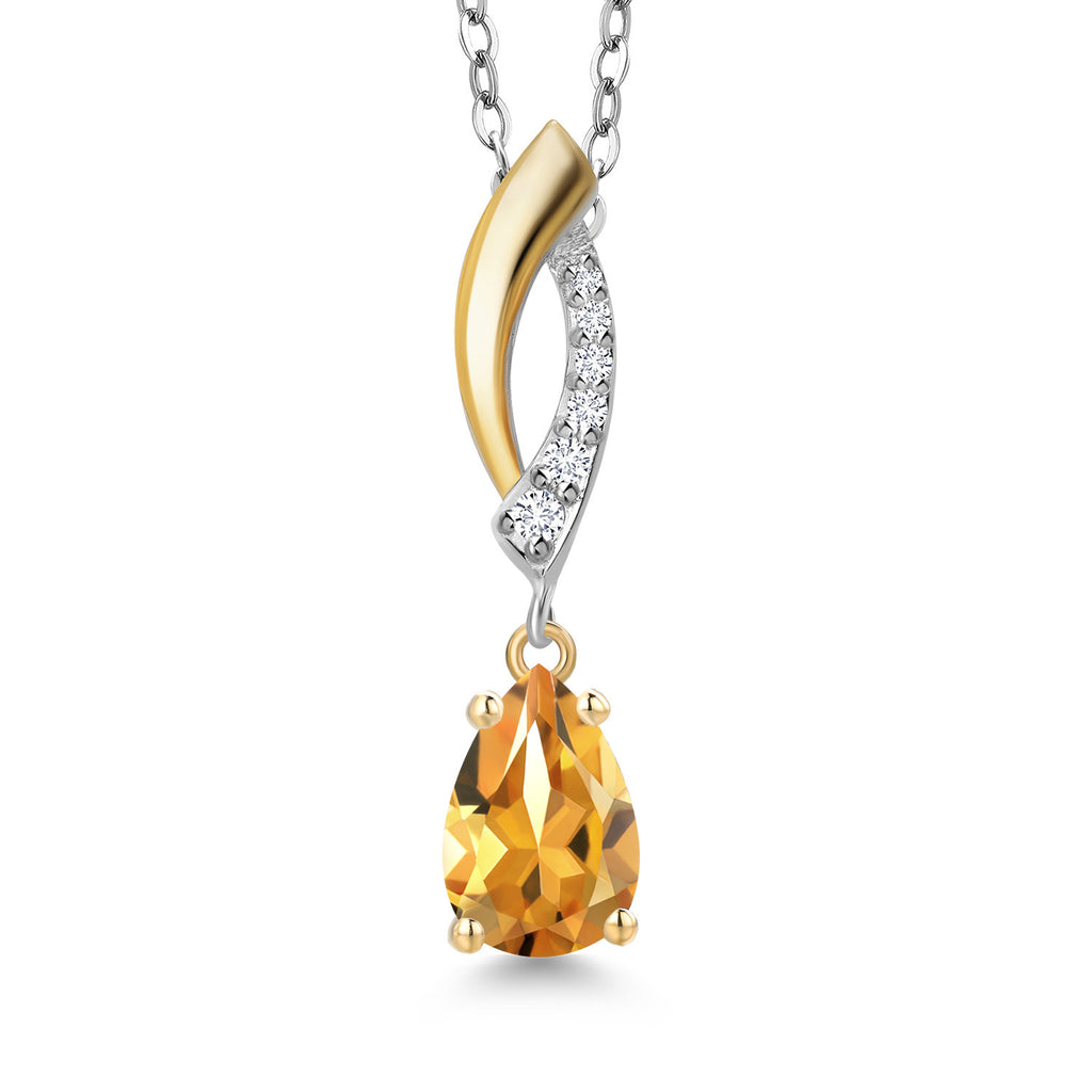 Teardrop Necklace for Women | 925 Silver and 10K Yellow Gold | 8X5MM Pear Shape Gemstone Birthstone and White Lab Grown Diamond Pendant Necklace | With 18 Inch Silver Chain