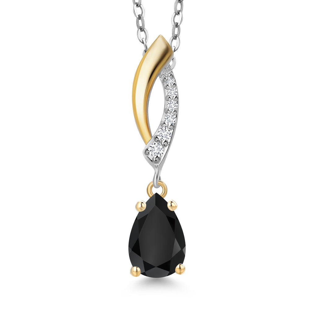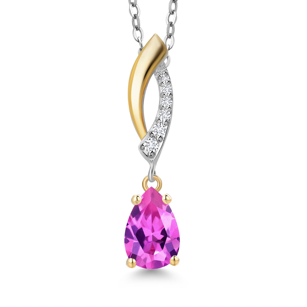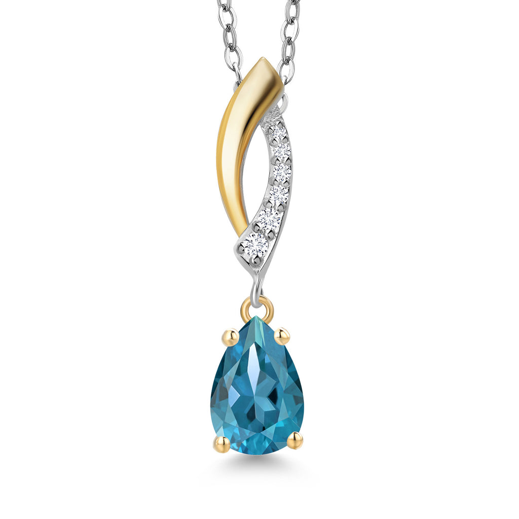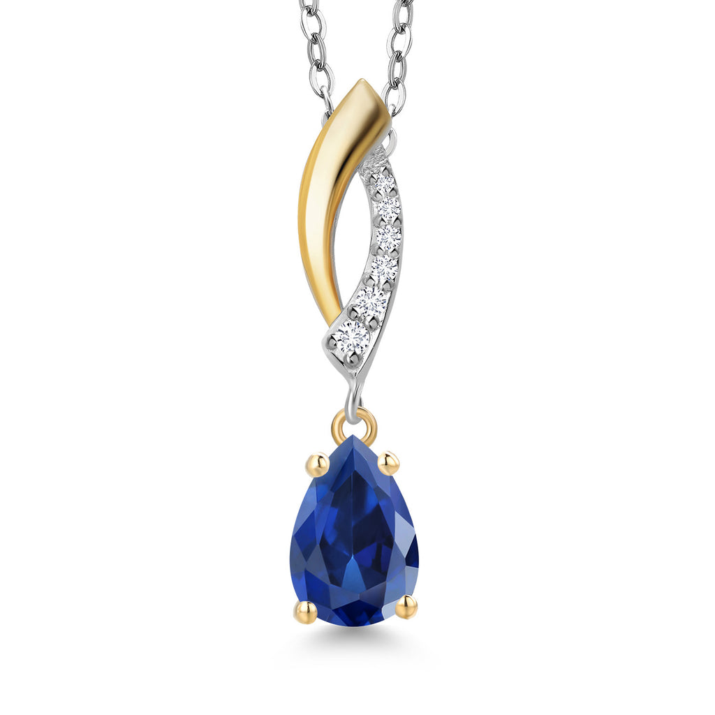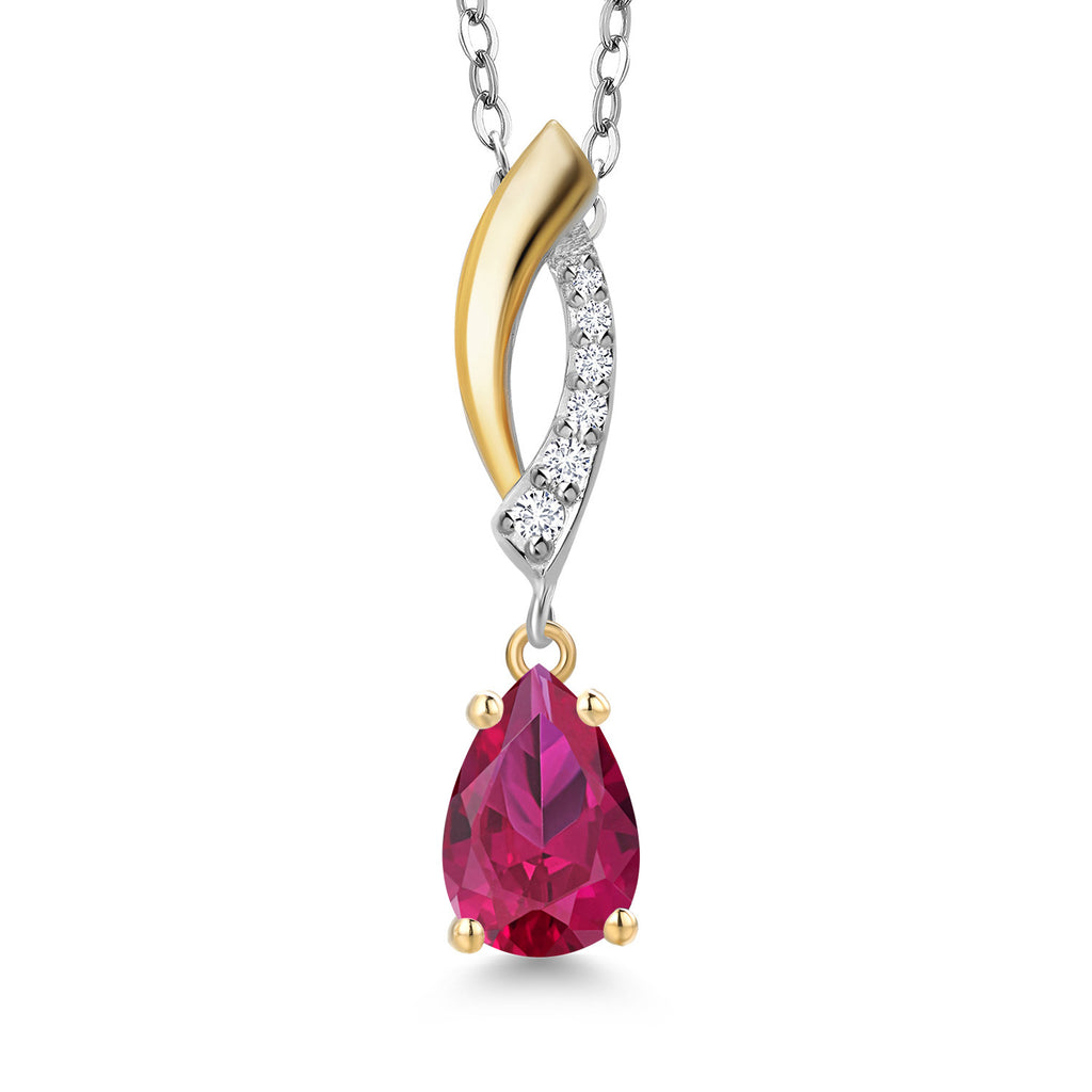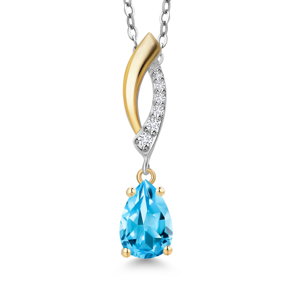 Teardrop Necklace for Women | 925 Silver and 10K Yellow Gold | 8X5MM Pear Shape Gemstone Birthstone and White Lab Grown Diamond Pendant Necklace | With 18 Inch Silver Chain