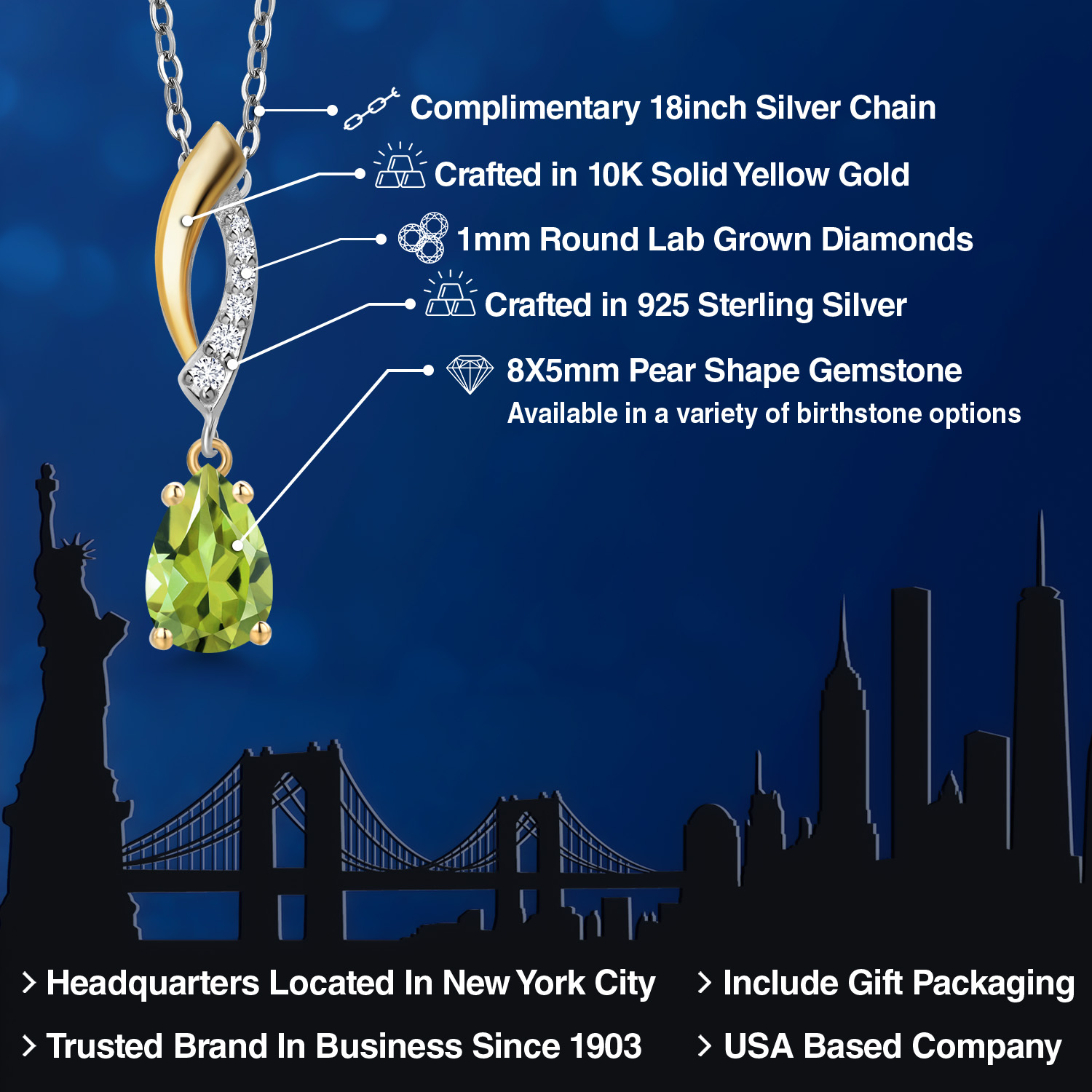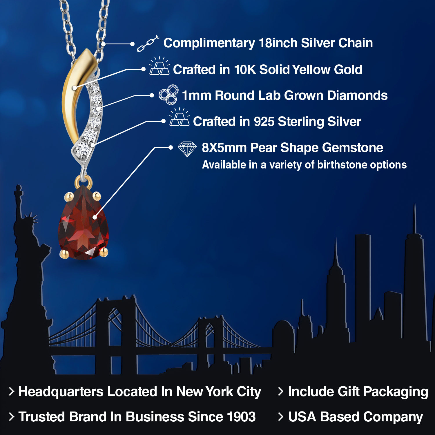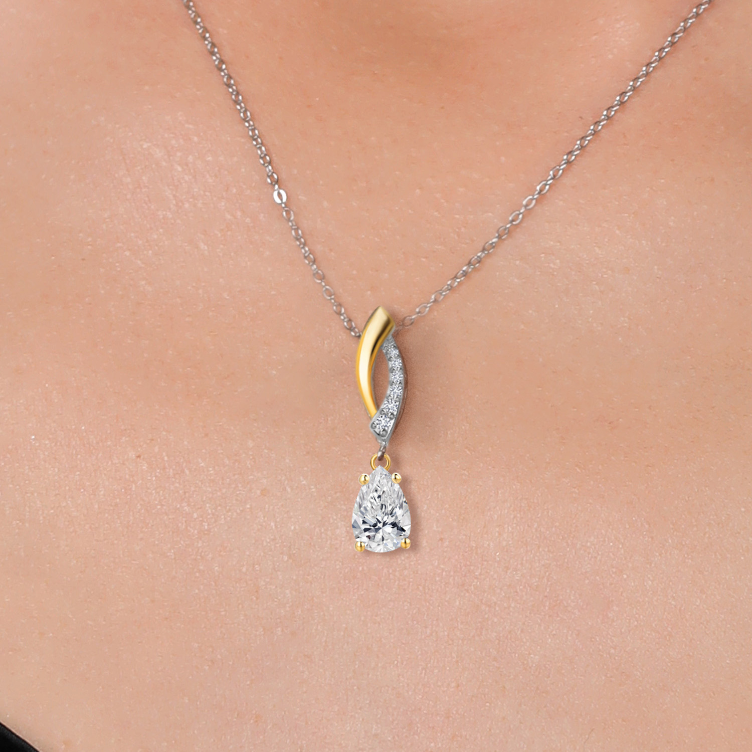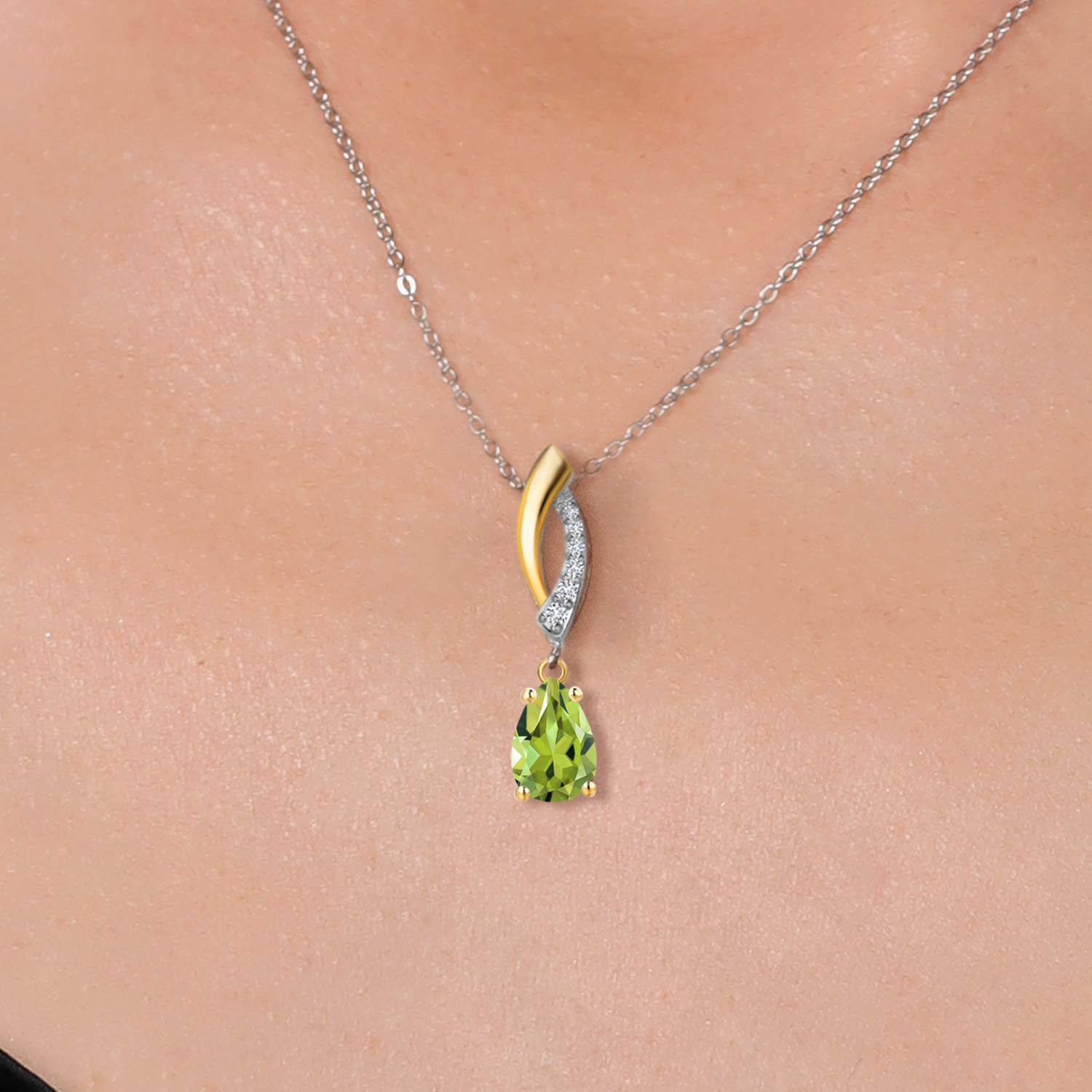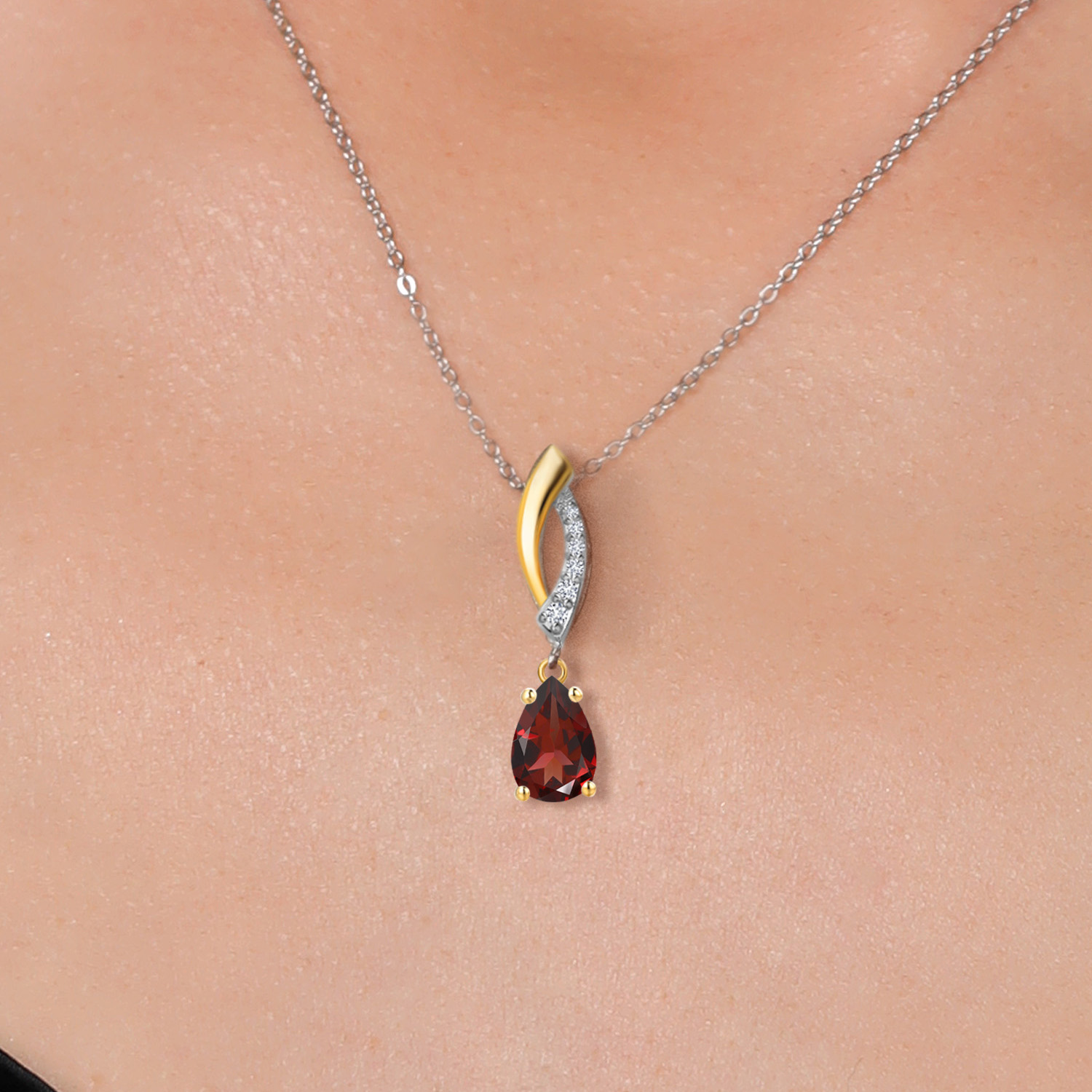 Teardrop Necklace for Women | 925 Silver and 10K Yellow Gold | 8X5MM Pear Shape Gemstone Birthstone and White Lab Grown Diamond Pendant Necklace | With 18 Inch Silver Chain