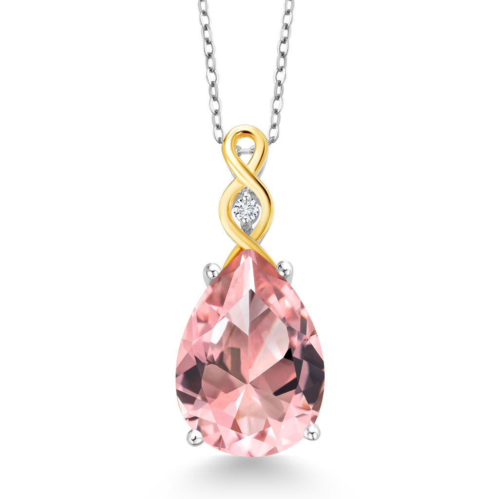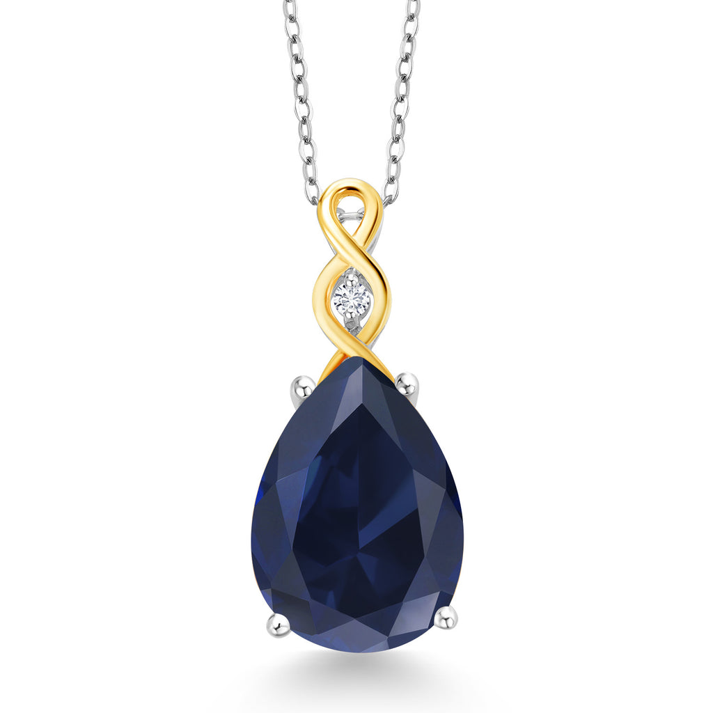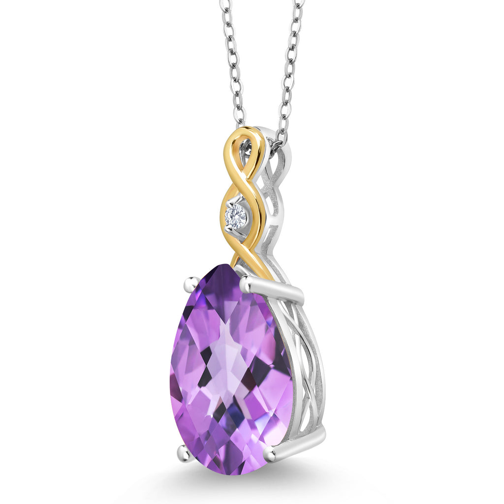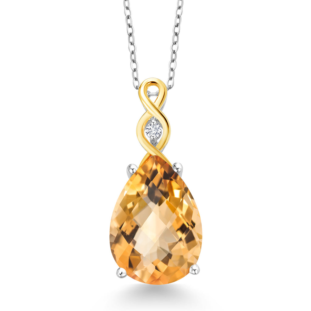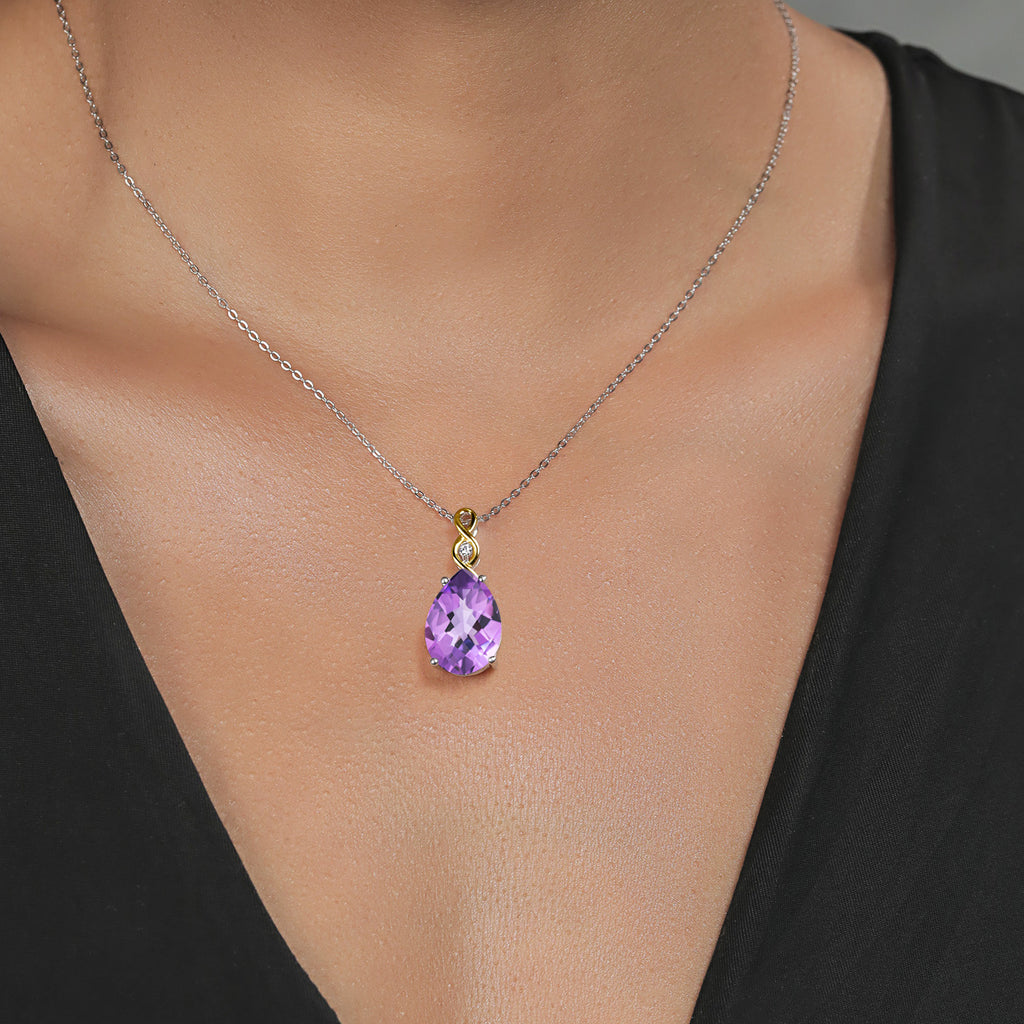 UNIQUE TWO-TONE ELEGANCE: This exquisite pendant combines the timeless beauty of 925 sterling silver with the warm luster of 10K yellow gold, creating a striking two-tone effect. The 18X13MM pear-shaped gemstone, available in various birthstones, is perfectly accented by radiant lab-grown diamonds, offering a luxurious and contemporary look.