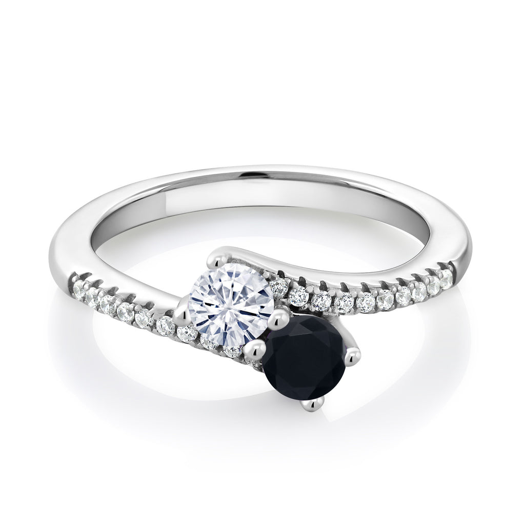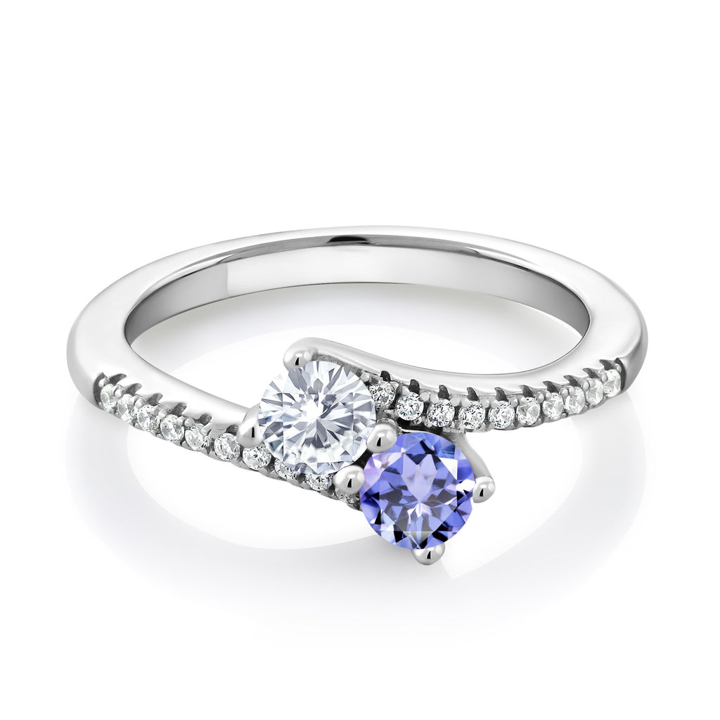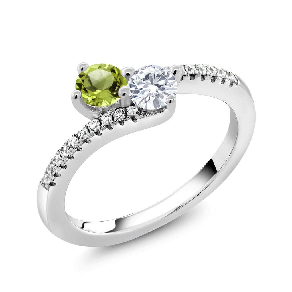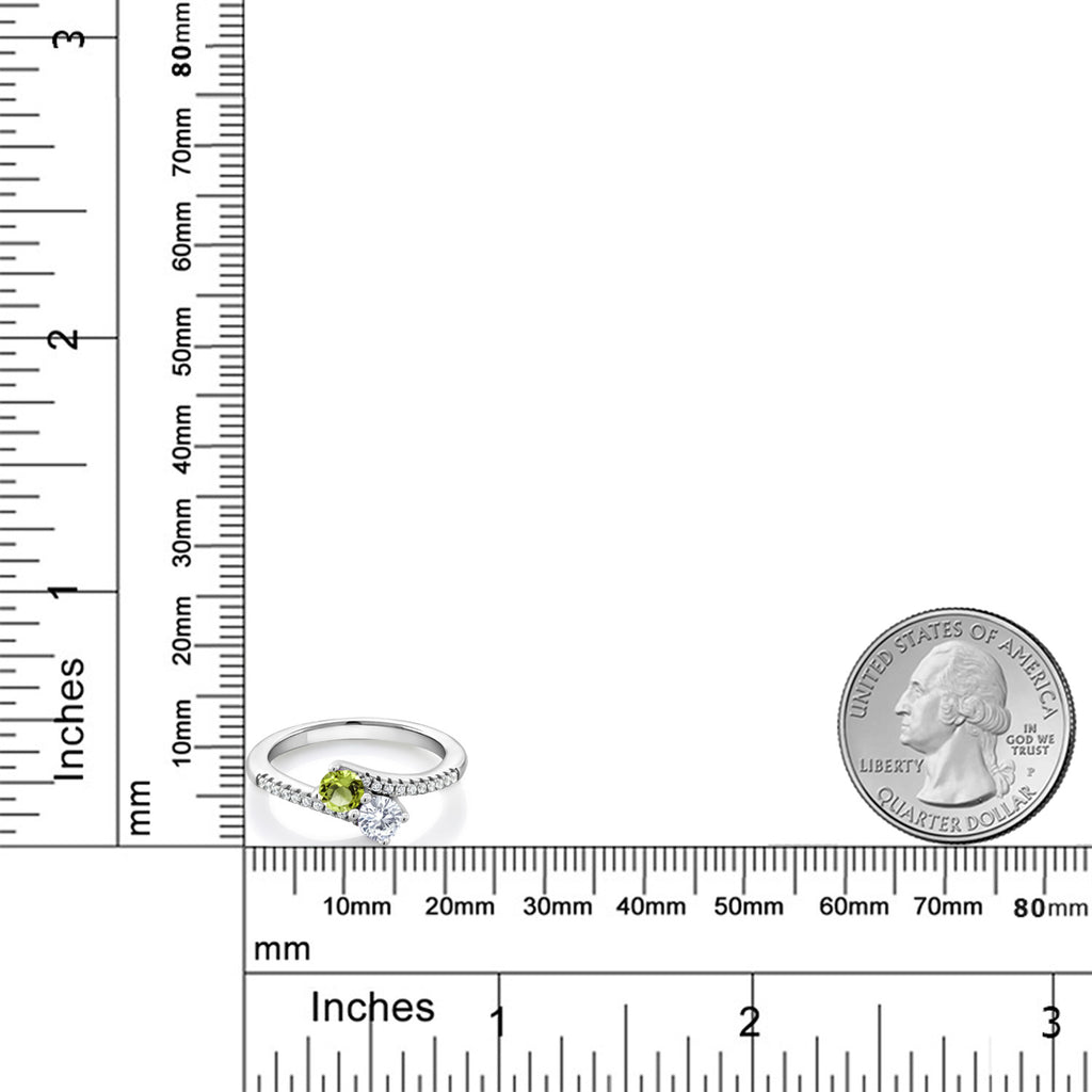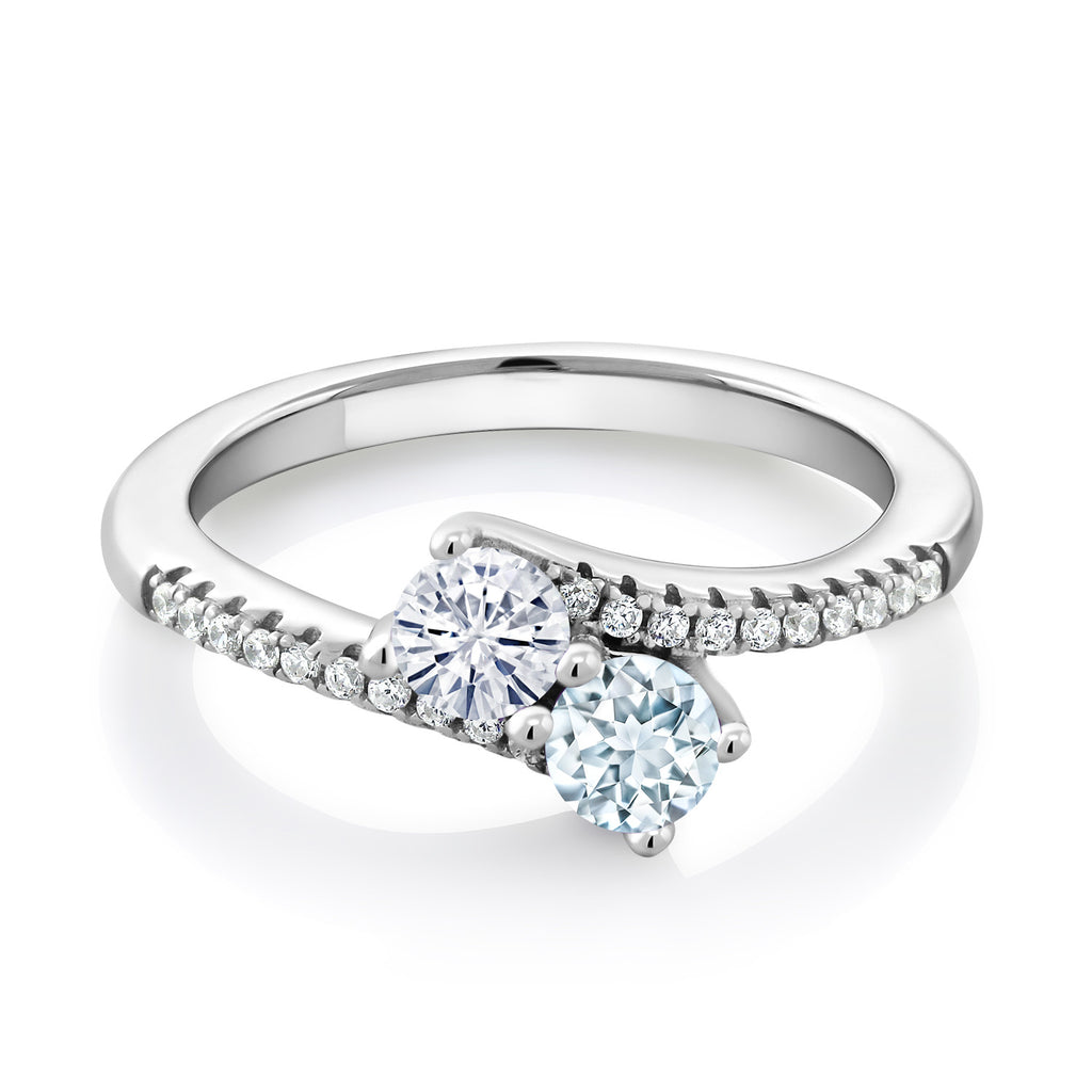 Two-Stone Bypass Ring for Women in 925 Sterling Silver | 4MM Round Gemstone Birthstone and White Moissanite | Crossover Anniversary Engagement Wedding Promise Ring | Sizes 5, 6, 7, 8, 9