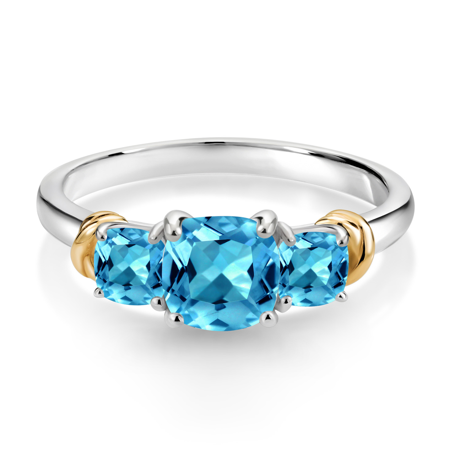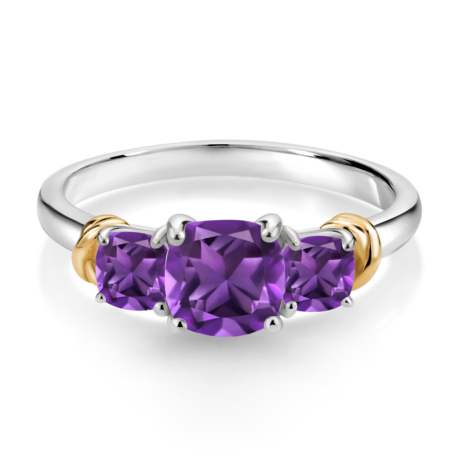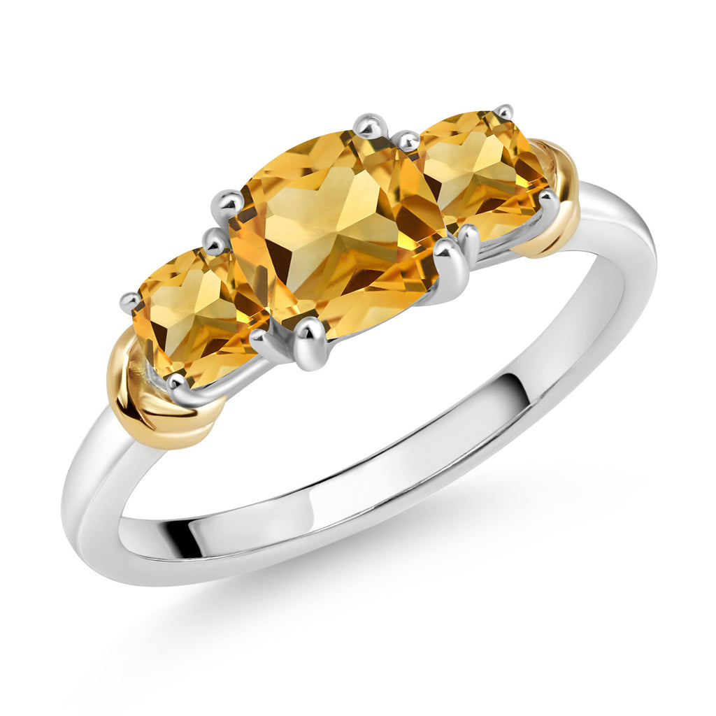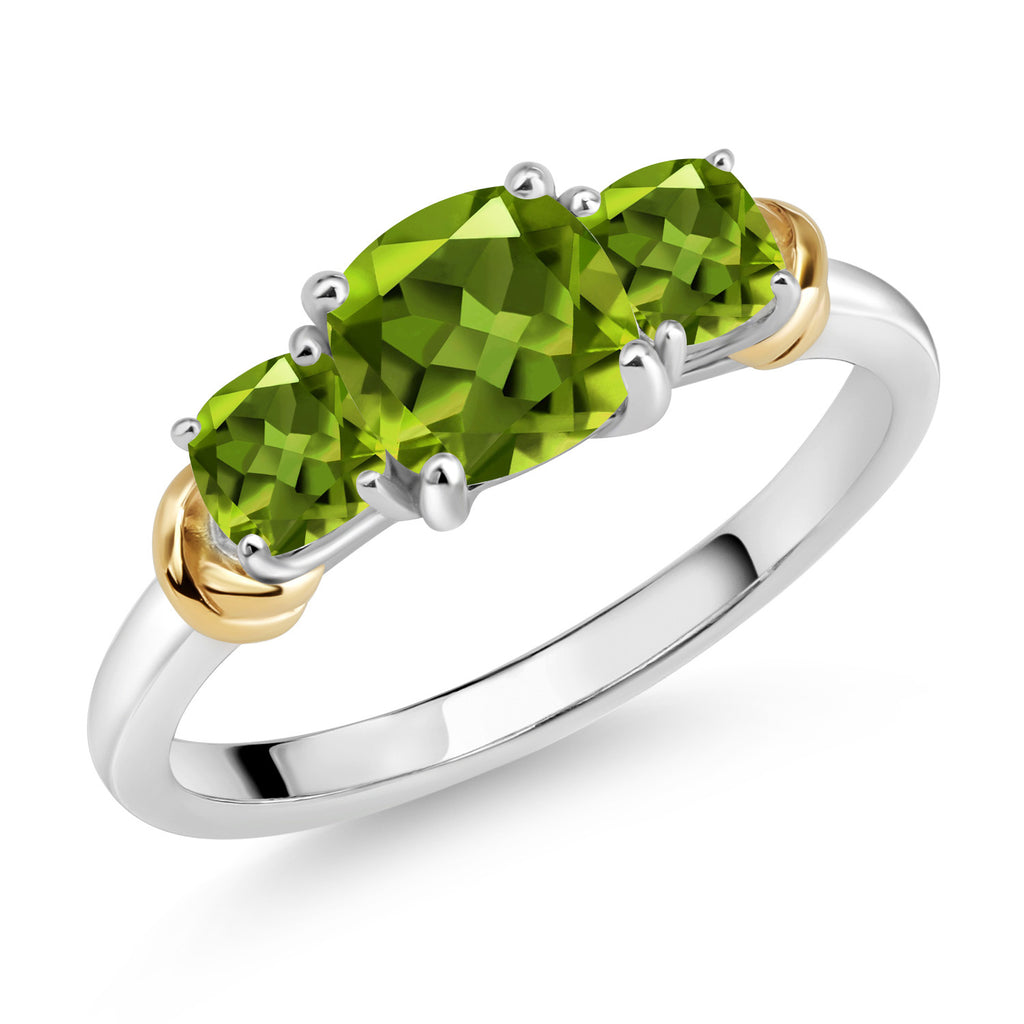 Two-Tone Gemstone Birthstone 3-Stone Engagement Ring for Women | 925 Silver and 10K Yellow Gold | Cushion Cut 6MM and 4MM | Three Stone Wedding Anniversary Promise Ring | Sizes 5-9