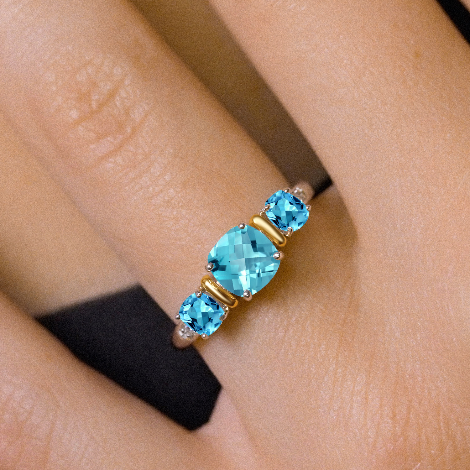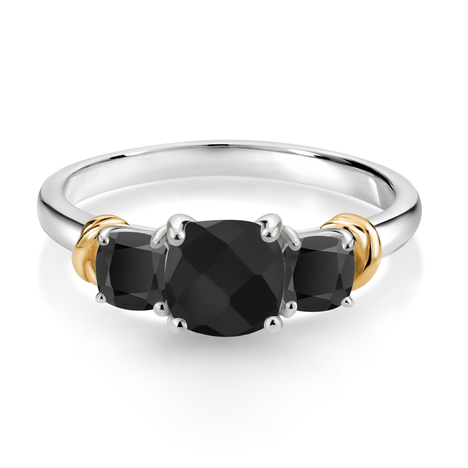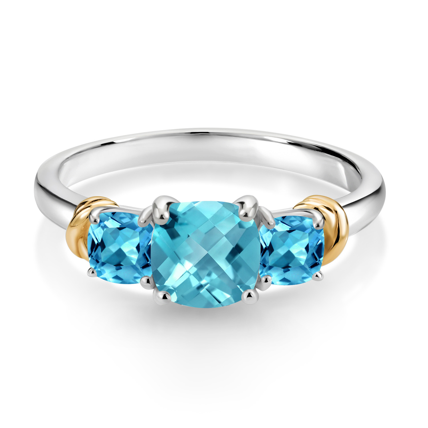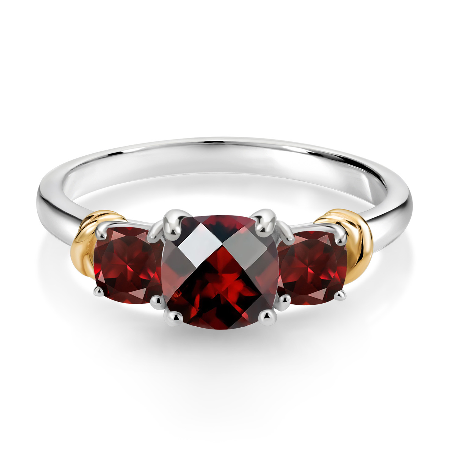 Two-Tone Gemstone Birthstone 3-Stone Engagement Ring for Women | 925 Silver and 10K Yellow Gold | Cushion Cut 6MM and 4MM | Three Stone Wedding Anniversary Promise Ring | Sizes 5-9