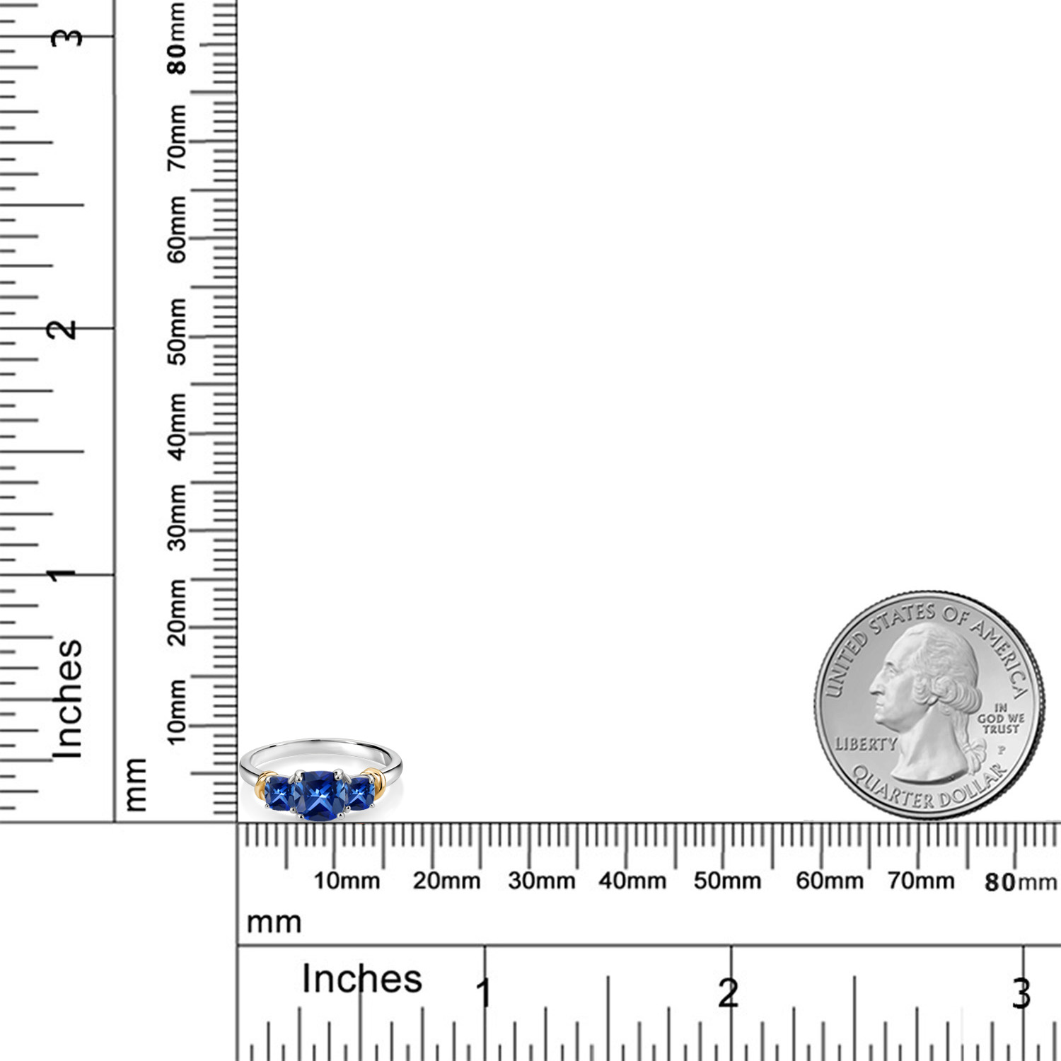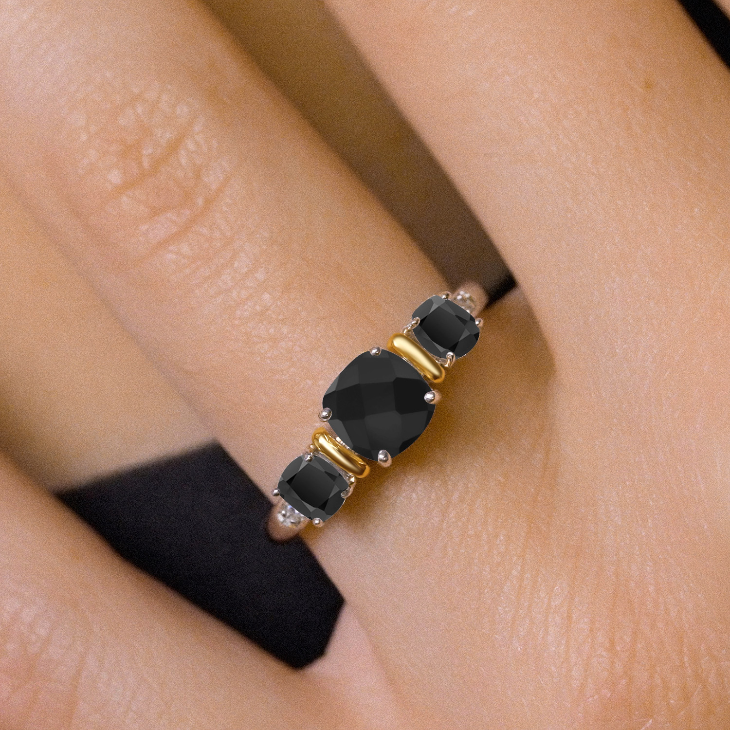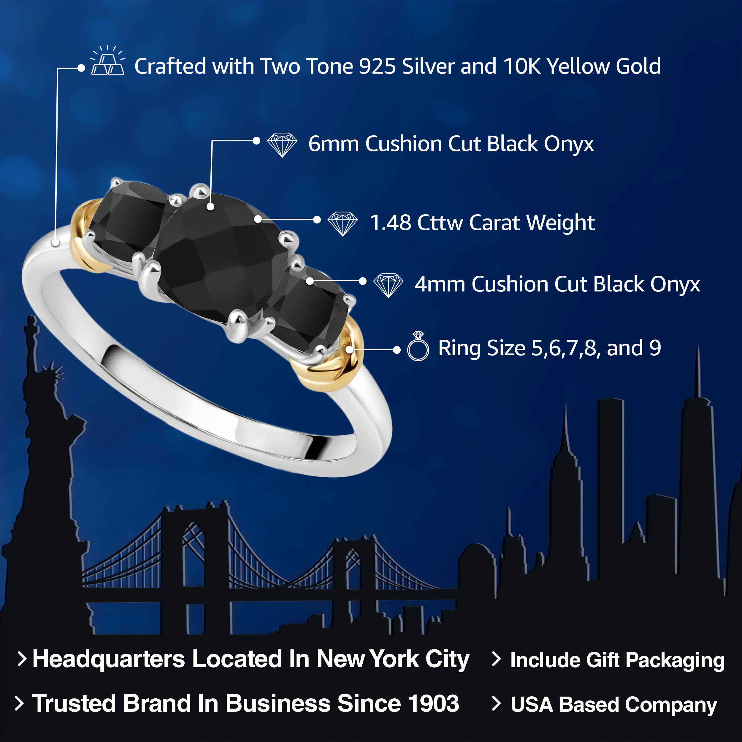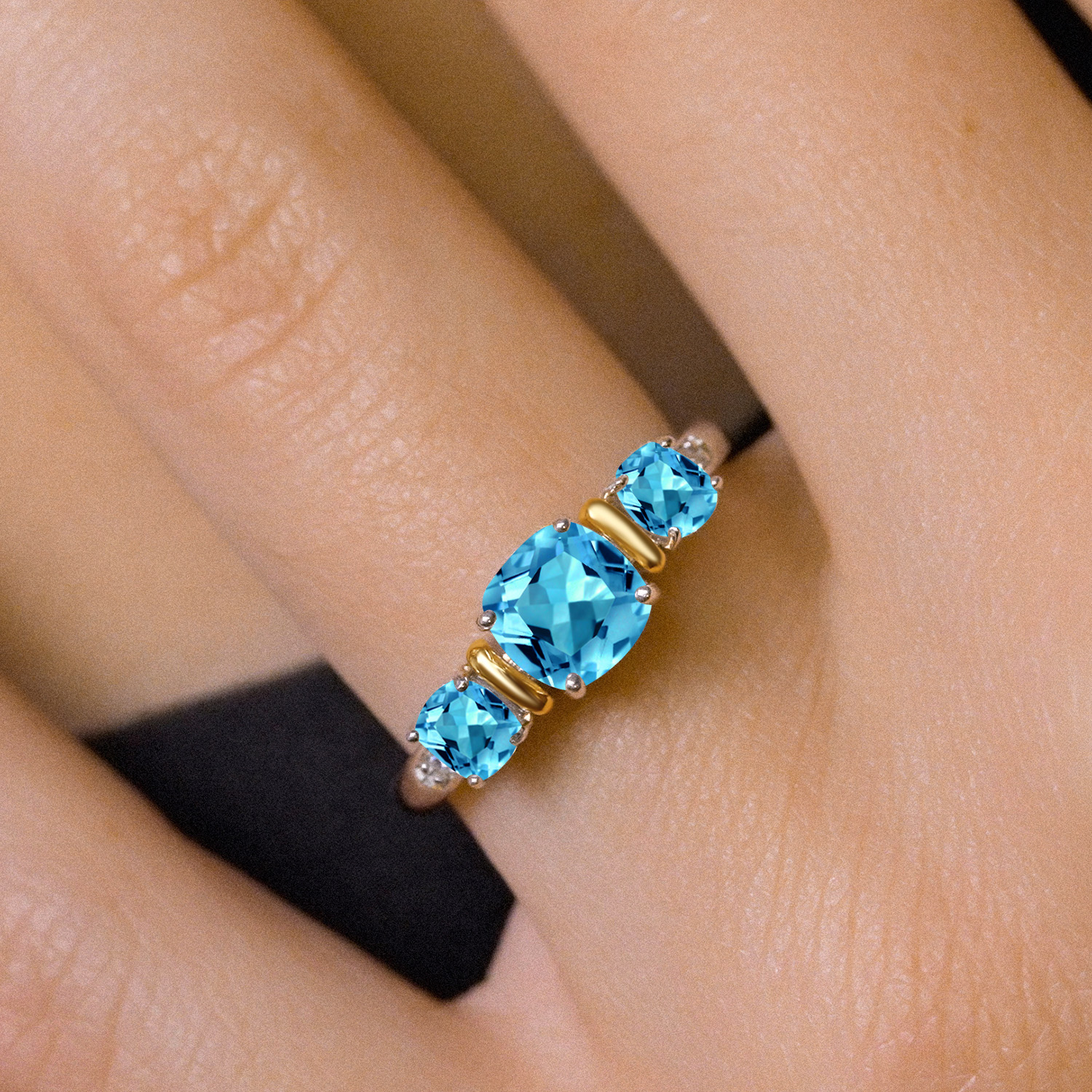 Two-Tone Gemstone Birthstone 3-Stone Engagement Ring for Women | 925 Silver and 10K Yellow Gold | Cushion Cut 6MM and 4MM | Three Stone Wedding Anniversary Promise Ring | Sizes 5-9