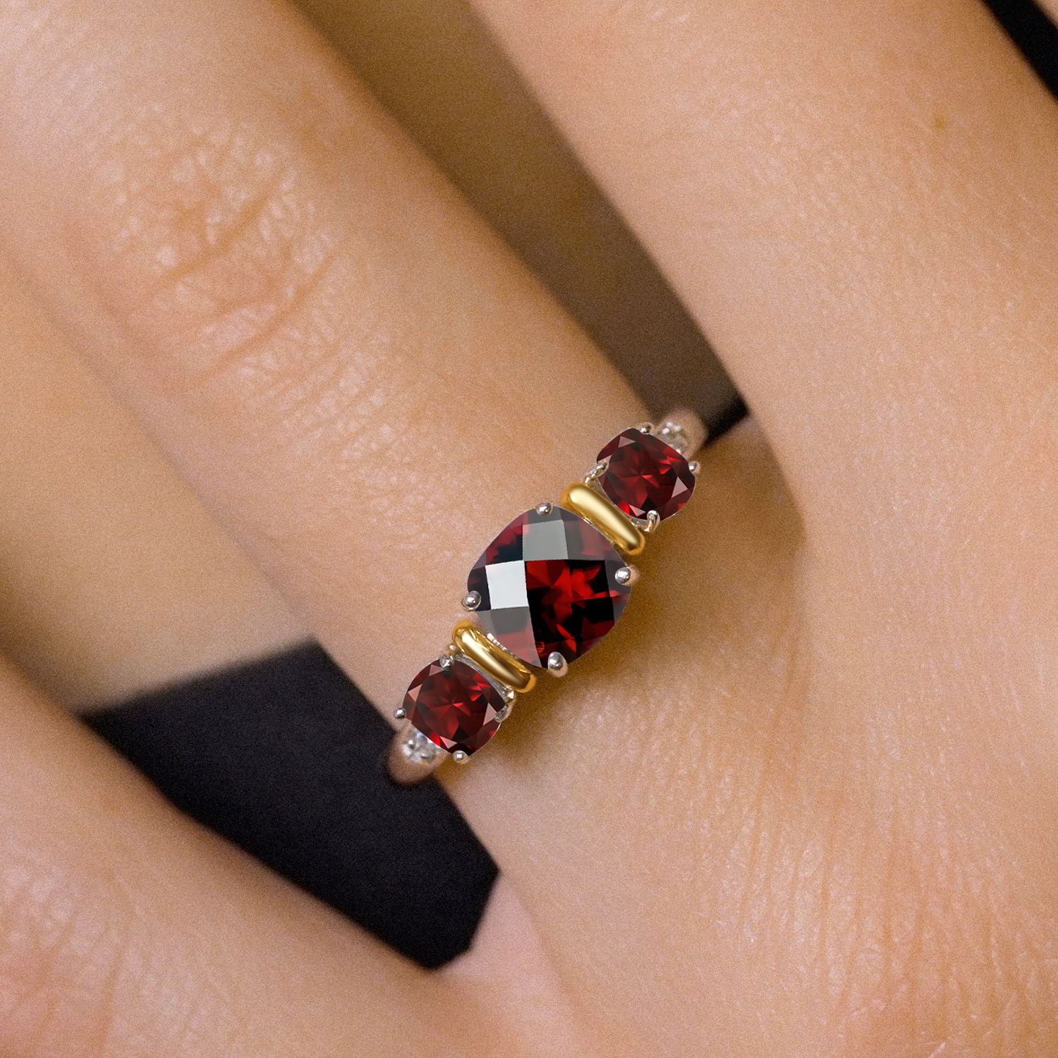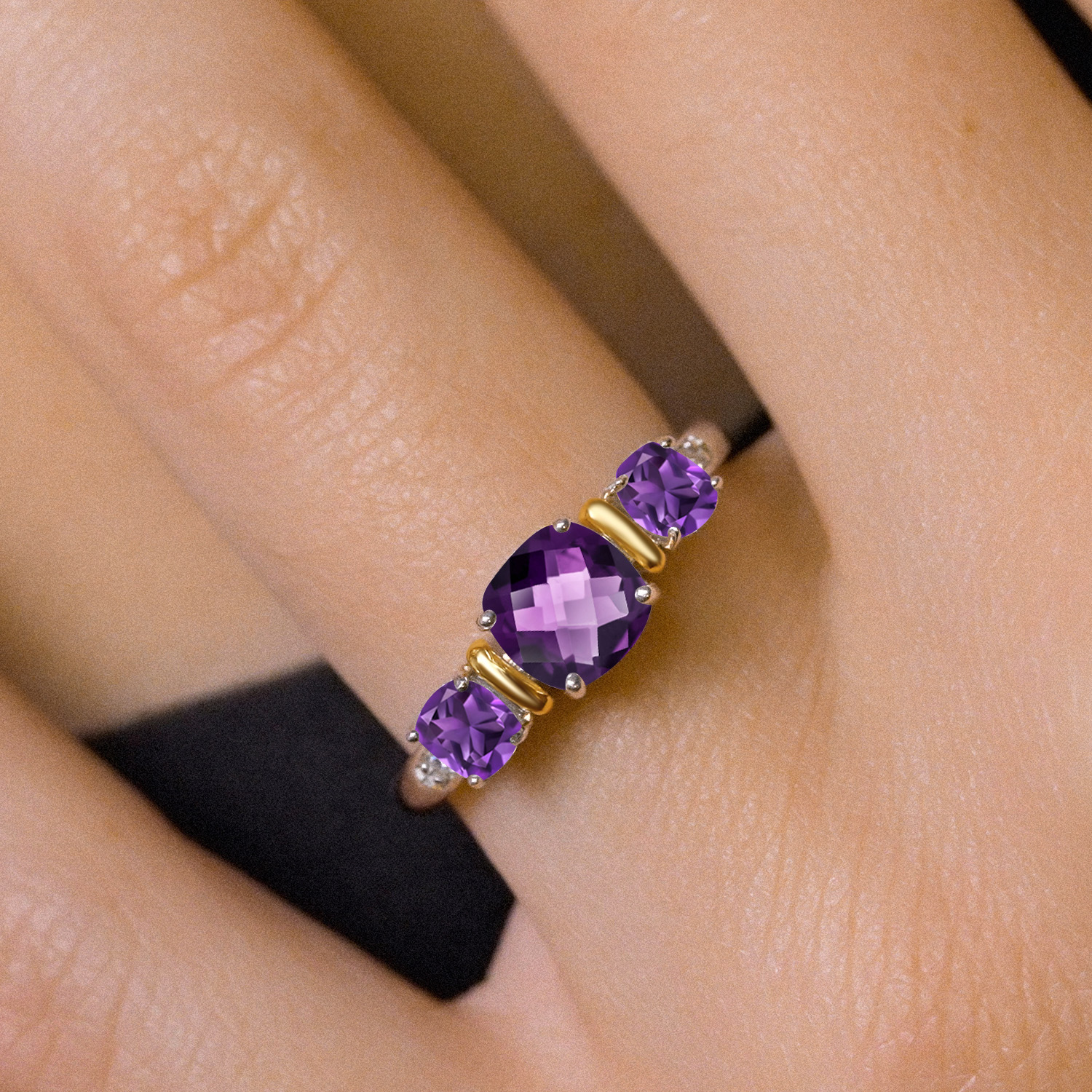 MESMERIZING GEMSTONE BRILLIANCE: This exquisite ring features a 6MM cushion-cut gemstone flanked by two 4MM stones, all expertly faceted to maximize brilliance. Available in birthstone options for a personal touch, the vivid sparkle and rounded corners of the cushion cut create a captivating play of light. A perfect symbol of love and commitment, it’s an ideal choice for engagement, anniversary, or heartfelt gifting.