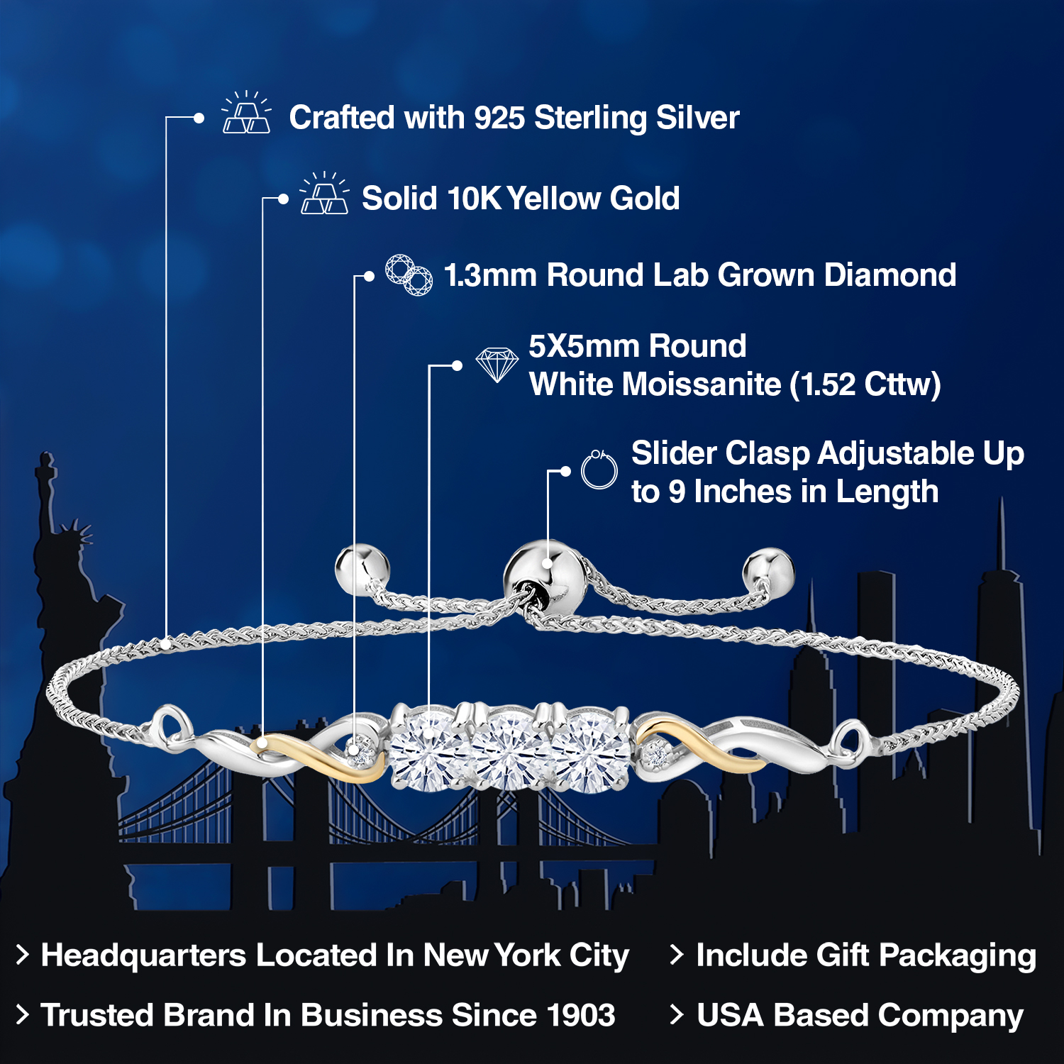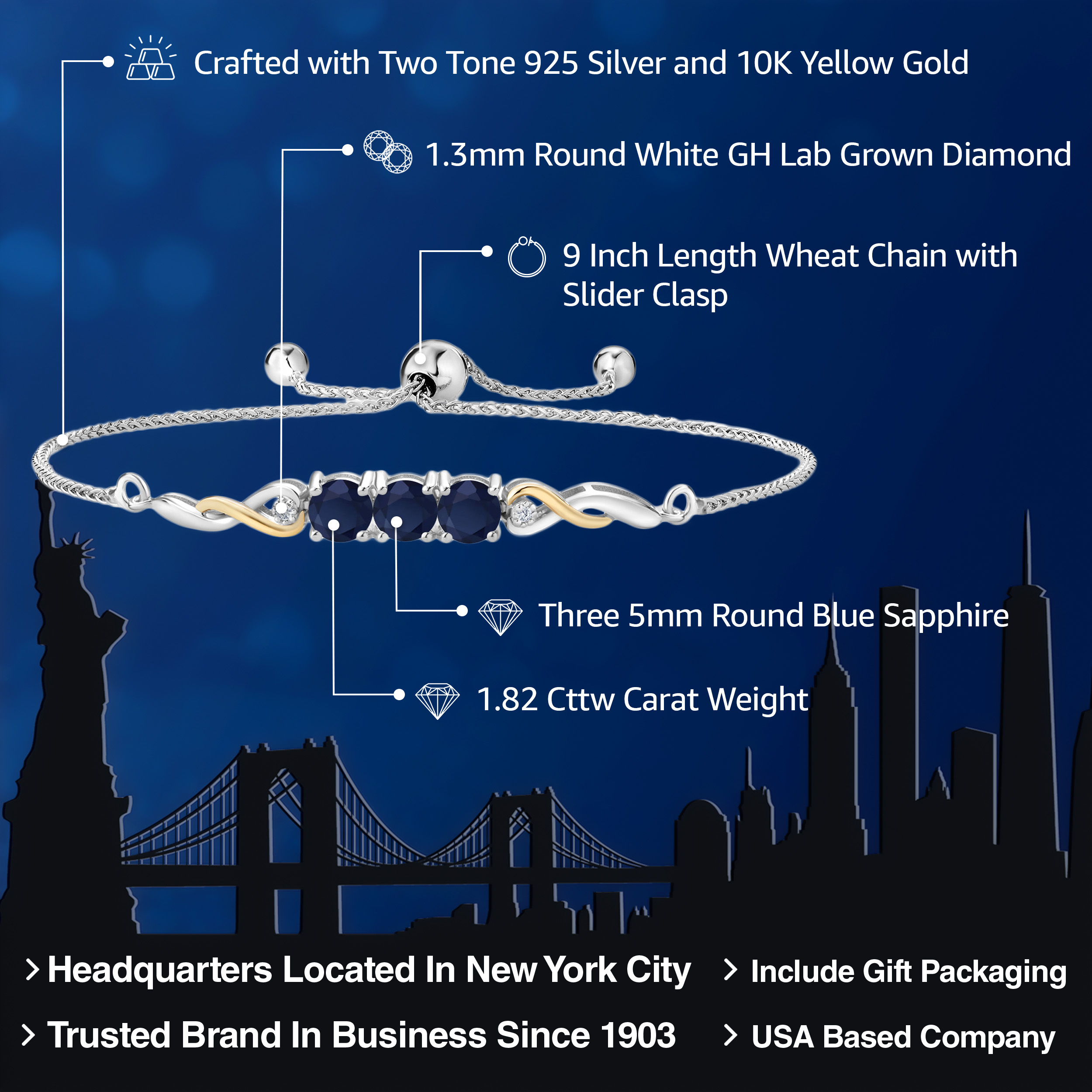 Two-Tone Gemstone Birthstone and Accent Lab Grown Diamond Infinity Tennis Bracelet For Women In 925 Silver and 10K Yellow Gold | Round 5MM and 1.3MM | Fully Adjustable Up to 9 Inch