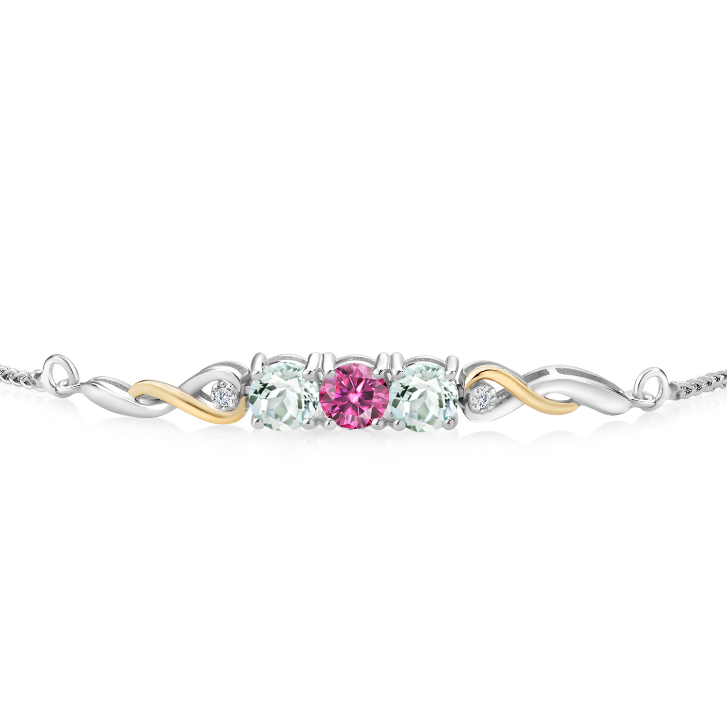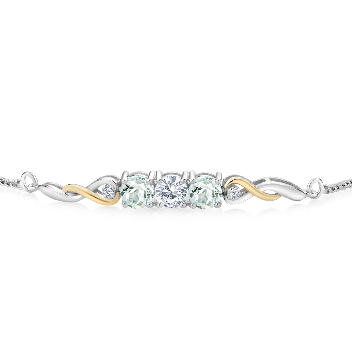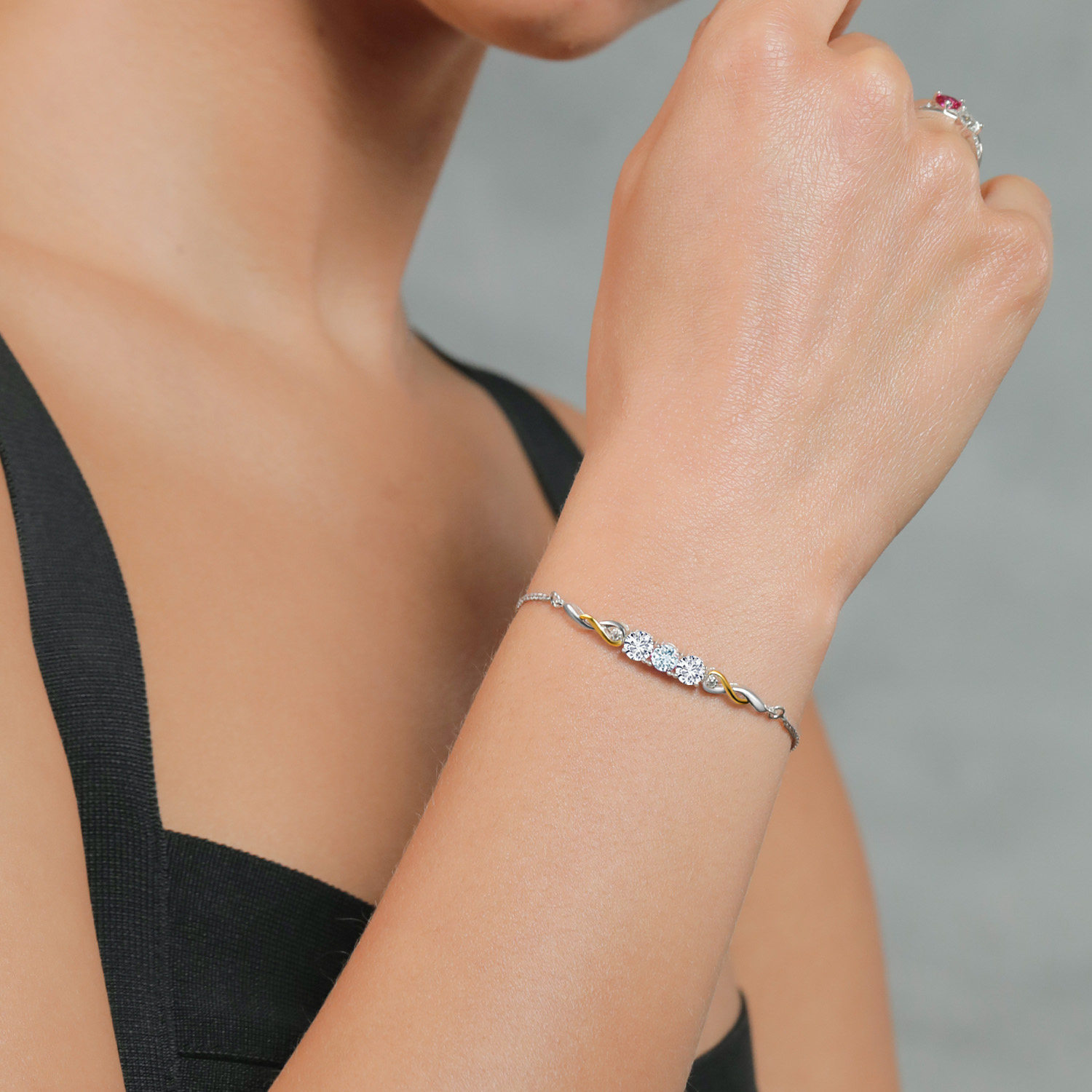 ELEGANT INFINITY DESIGN: Set in a graceful two-tone motif, the bracelet features 10K yellow gold infinity links twisting gently through polished 925 silver. Each side of the gemstone trio is accented with a white lab grown diamond and sculpted metalwork for added brilliance. With clean symmetry and modern movement, this bracelet blends heirloom charm with contemporary sparkle.