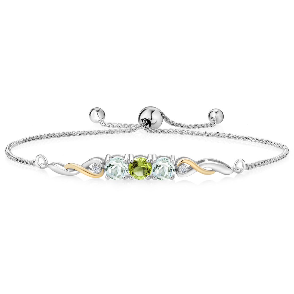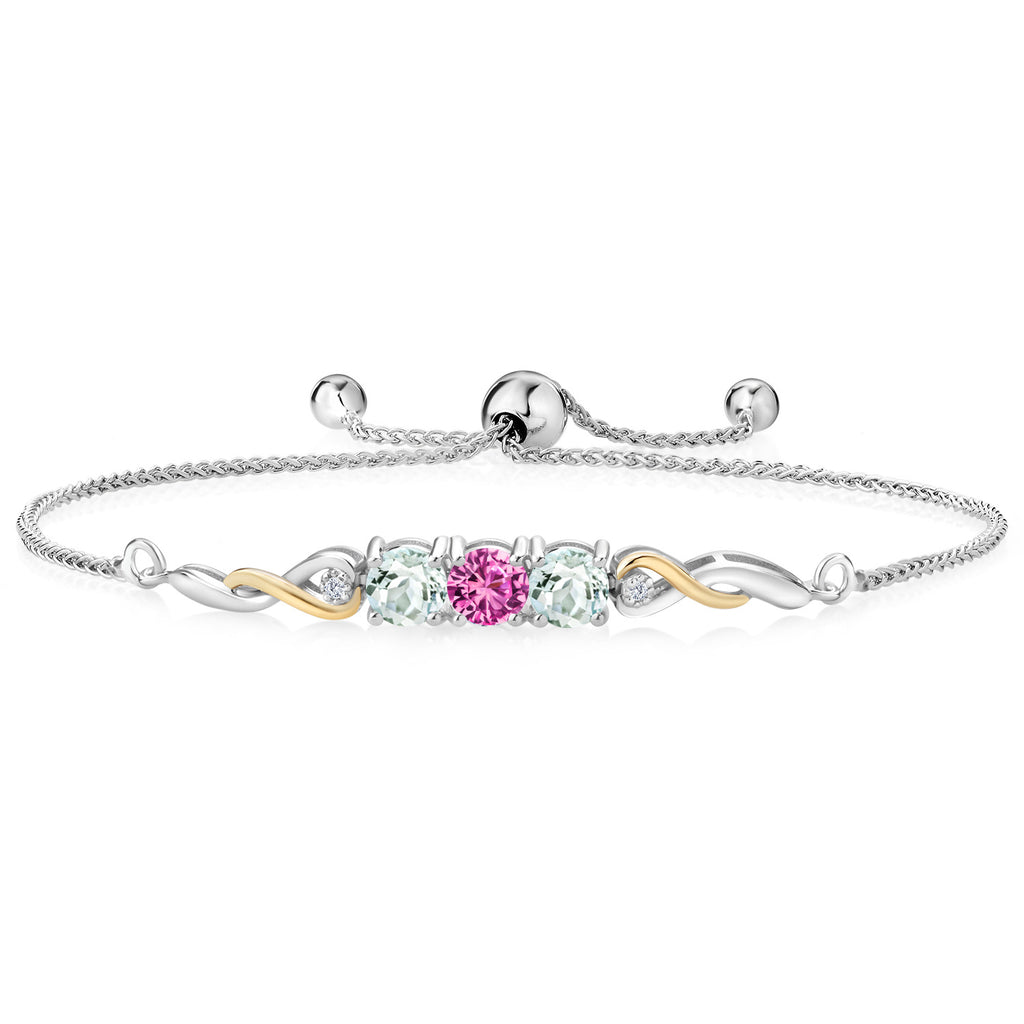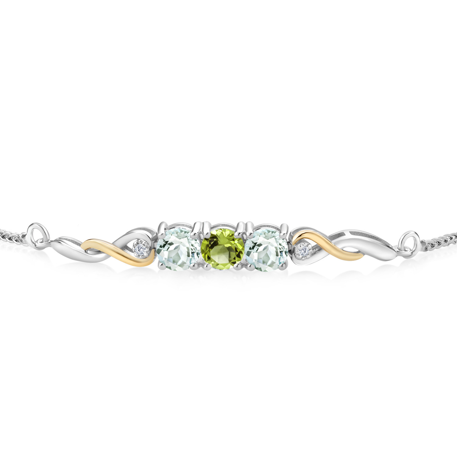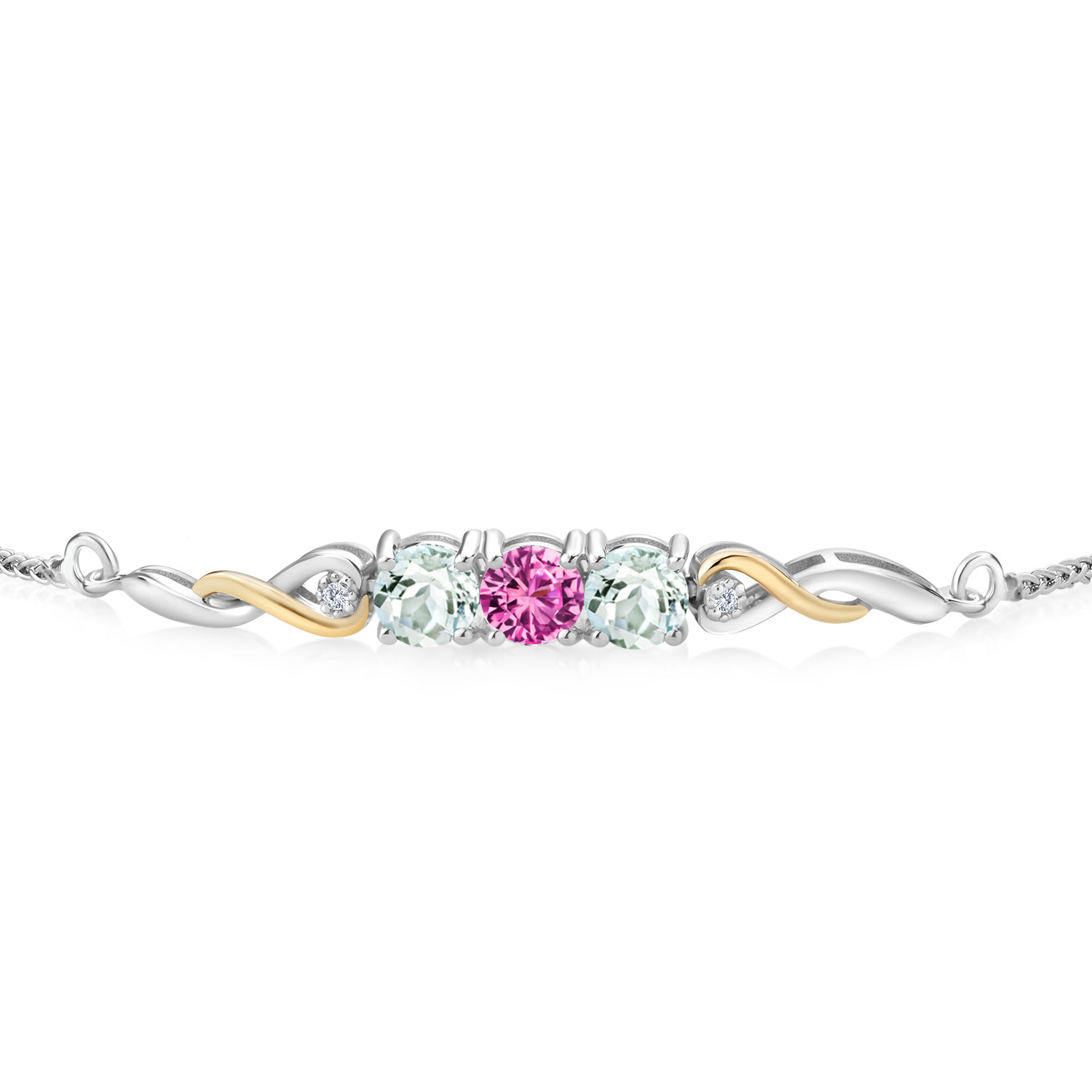ELEGANT INFINITY DESIGN: Set in a graceful two-tone motif, the bracelet features 10K yellow gold infinity links twisting gently through polished 925 silver. Each side of the gemstone trio is accented with a white lab grown diamond and sculpted metalwork for added brilliance. With clean symmetry and modern movement, this bracelet blends heirloom charm with contemporary sparkle.