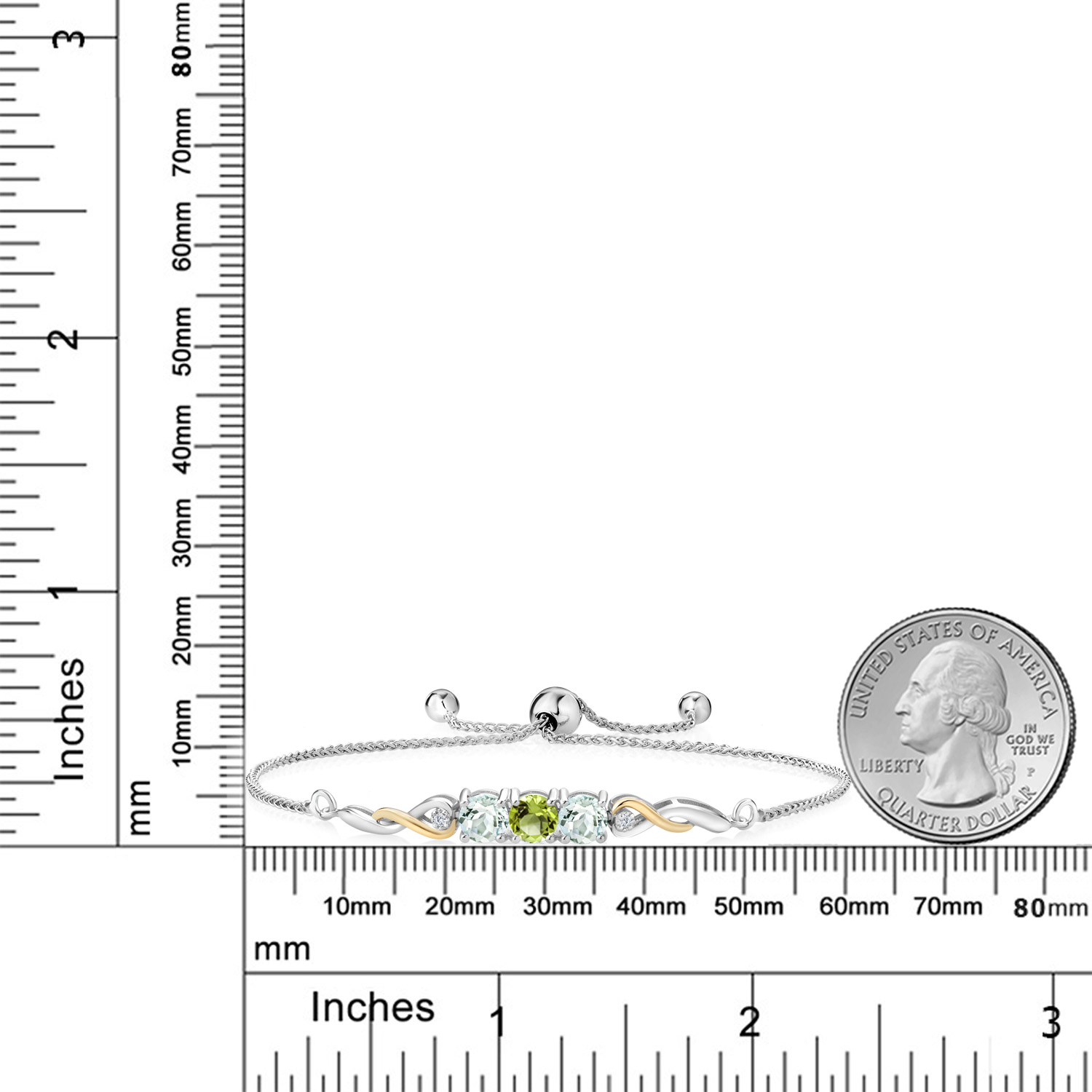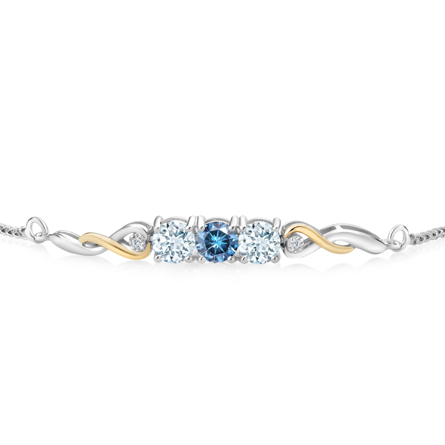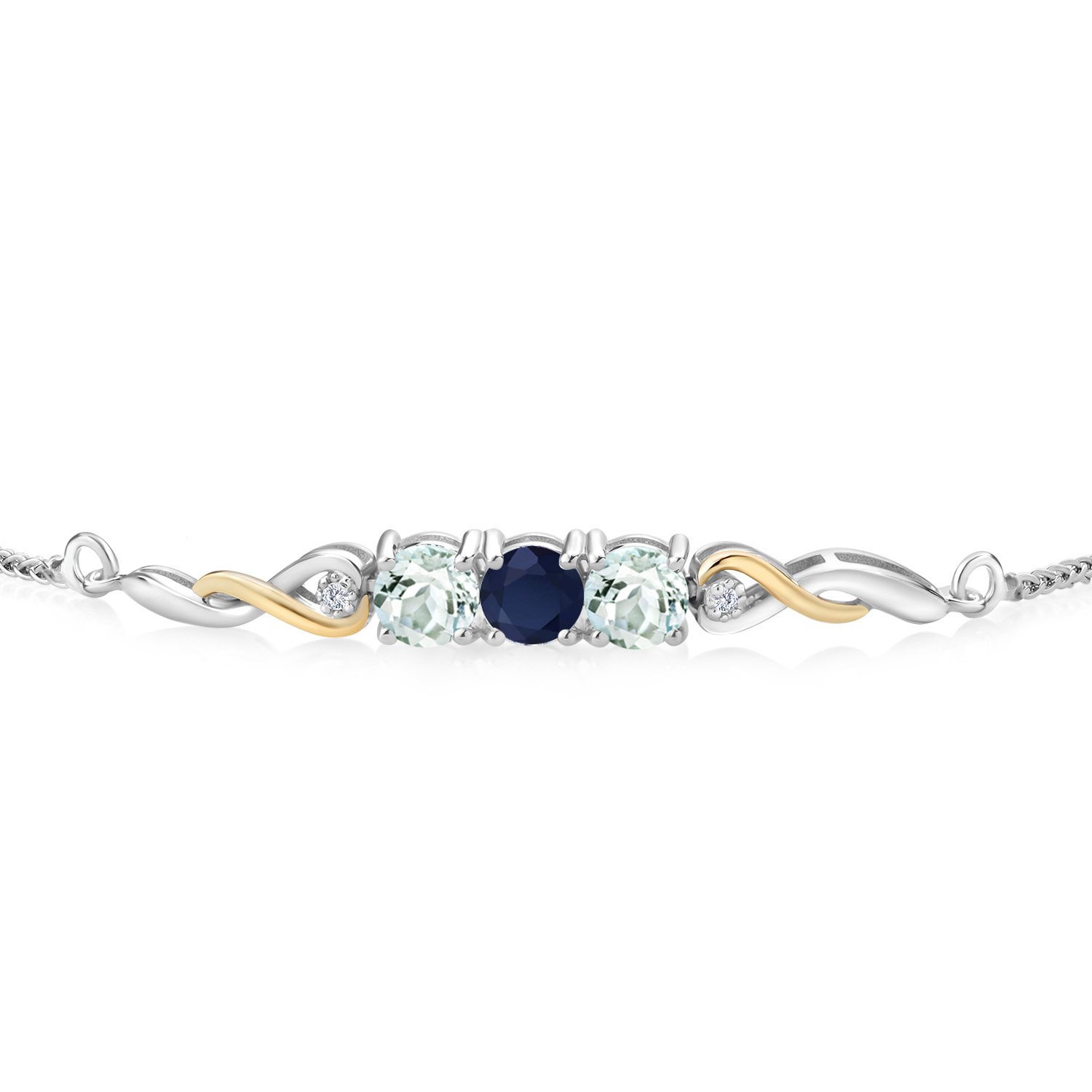 Two-Tone Gemstone Birthstone and Aquamarine and Accent Lab Grown Diamond Infinity Tennis Bracelet For Women In 925 Silver and 10K Yellow Gold | Round 5MM and 1.3MM | Fully Adjustable Up to 9 Inch