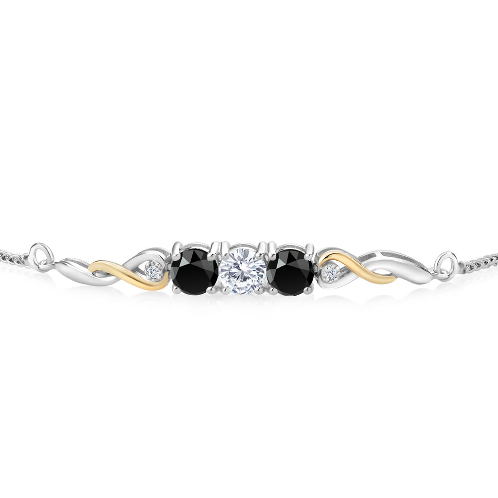 Two-Tone Gemstone Birthstone and Black Onyx and Accent Lab Grown Diamond Infinity Tennis Bracelet For Women In 925 Silver and 10K Yellow Gold | Round 5MM and 1.3MM | Fully Adjustable Up to 9 Inch