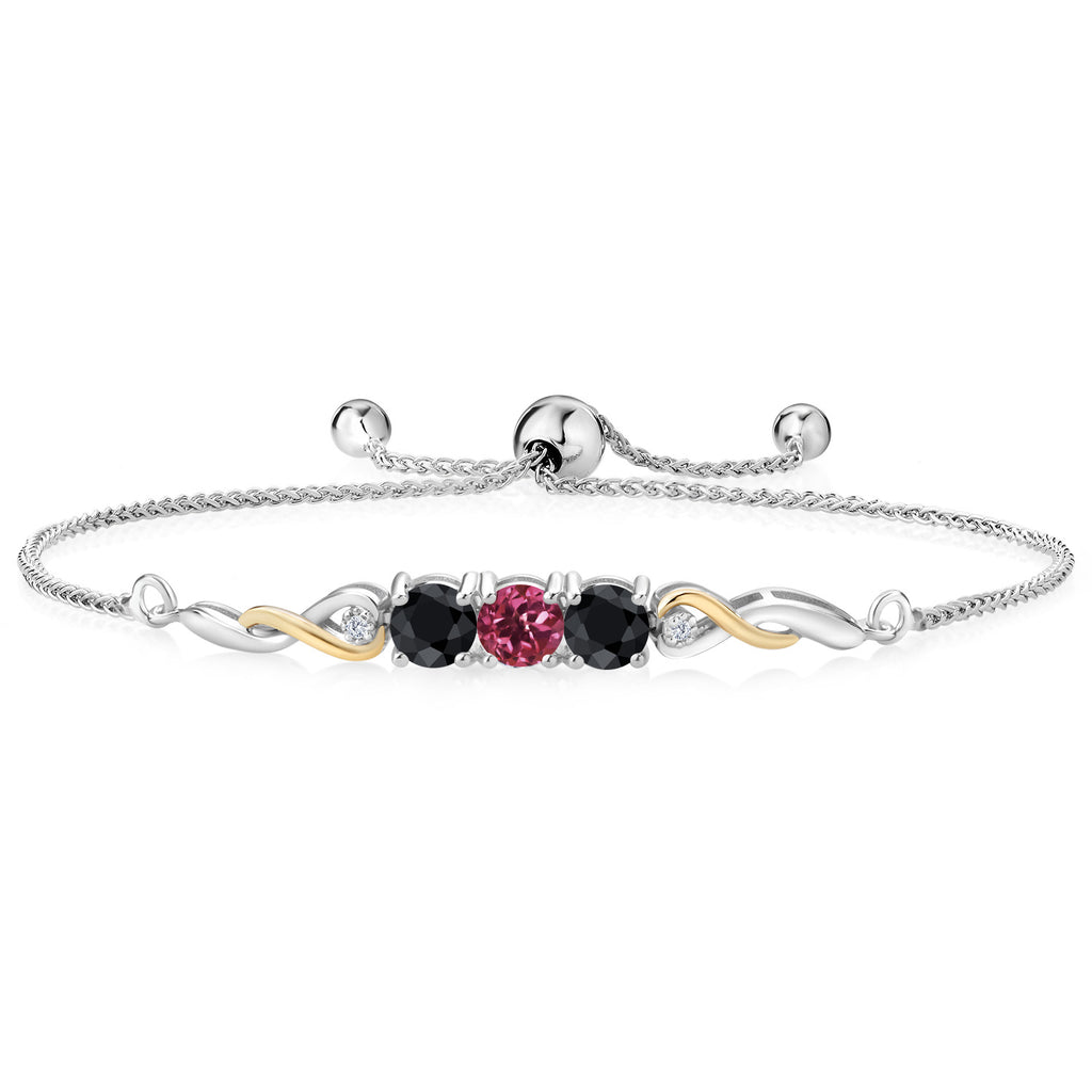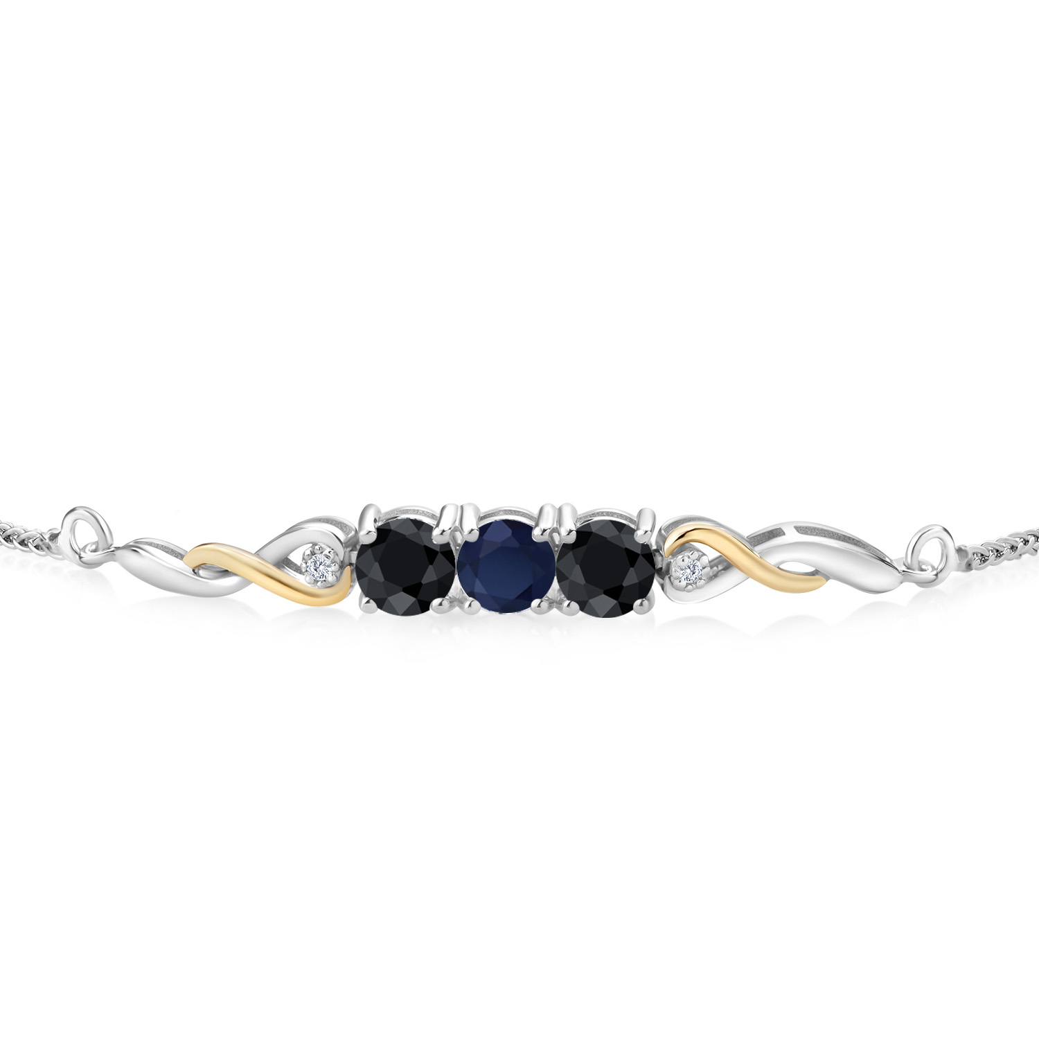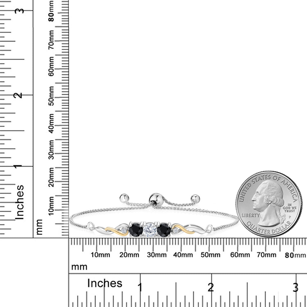 2-Tone Infinity Tennis Bracelet For Women | Gemstone Birthstone Black Sapphire and Accent Lab Grown Diamond | 925 Silver and 10K Yellow Gold | Round 5MM and 1.3MM | Fully Adjustable Up to 9 Inch