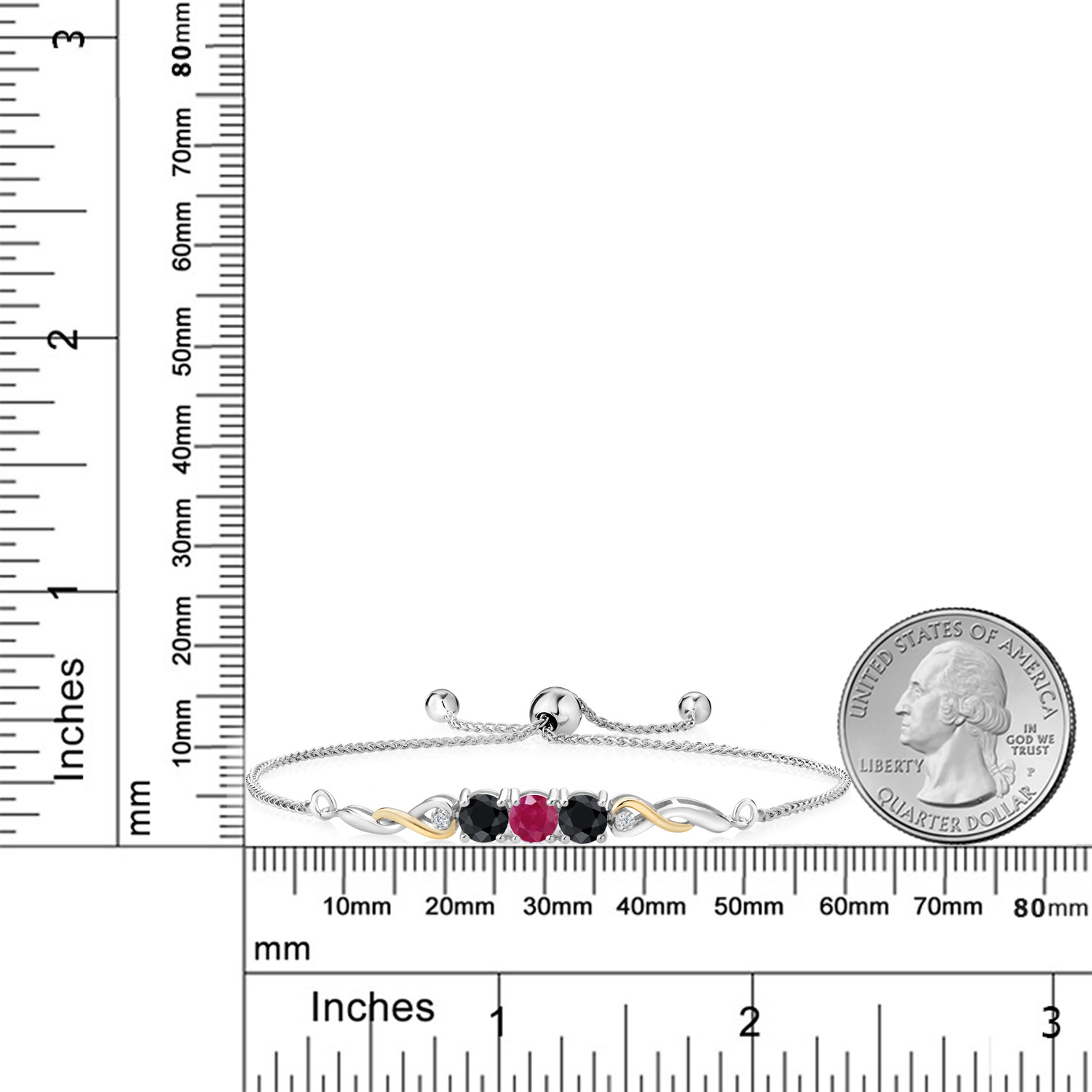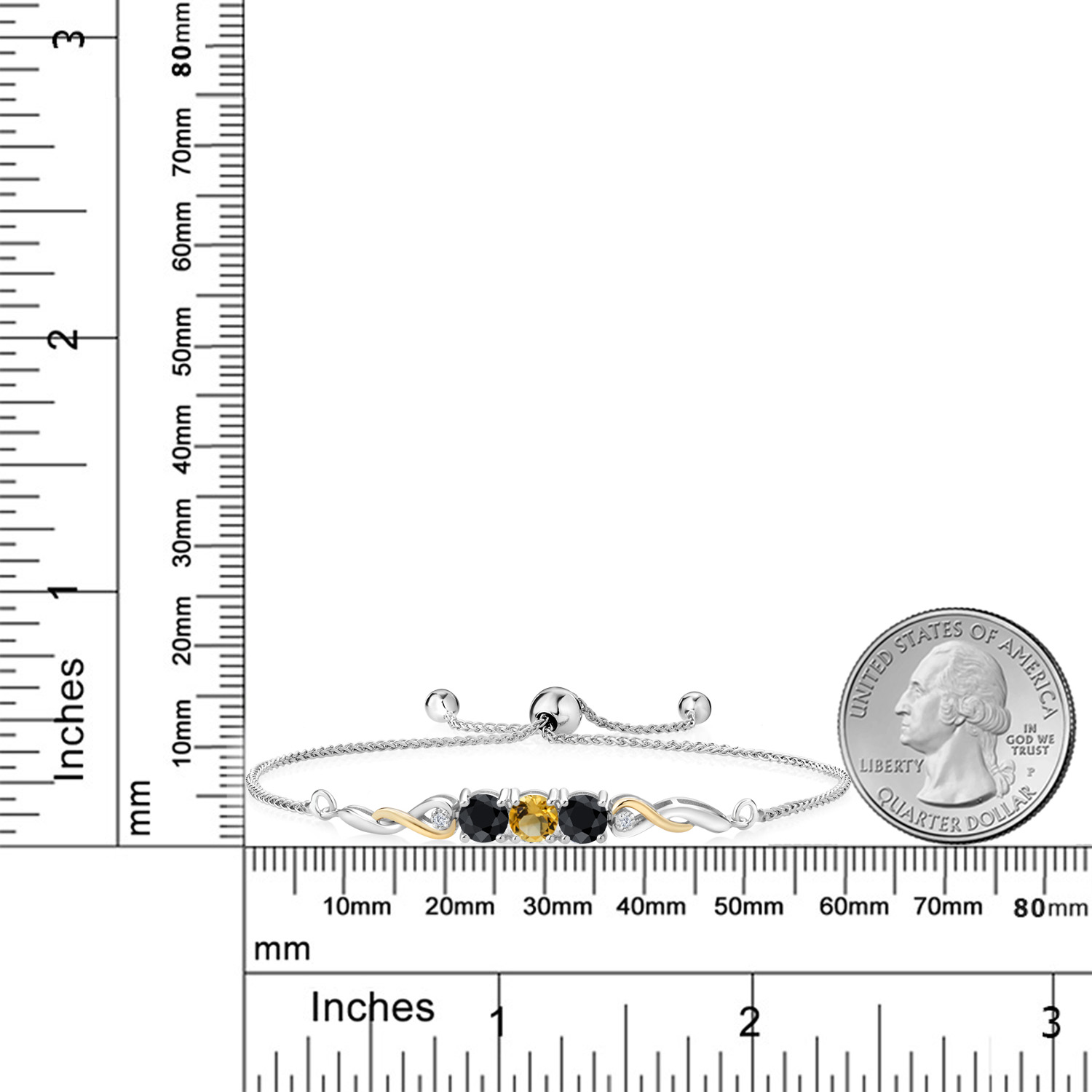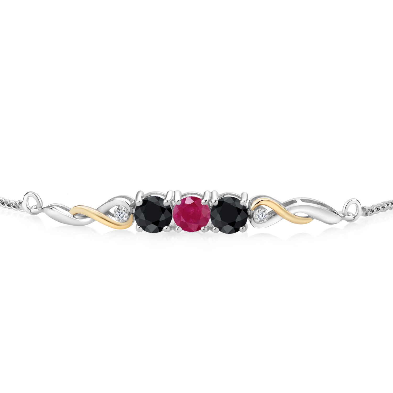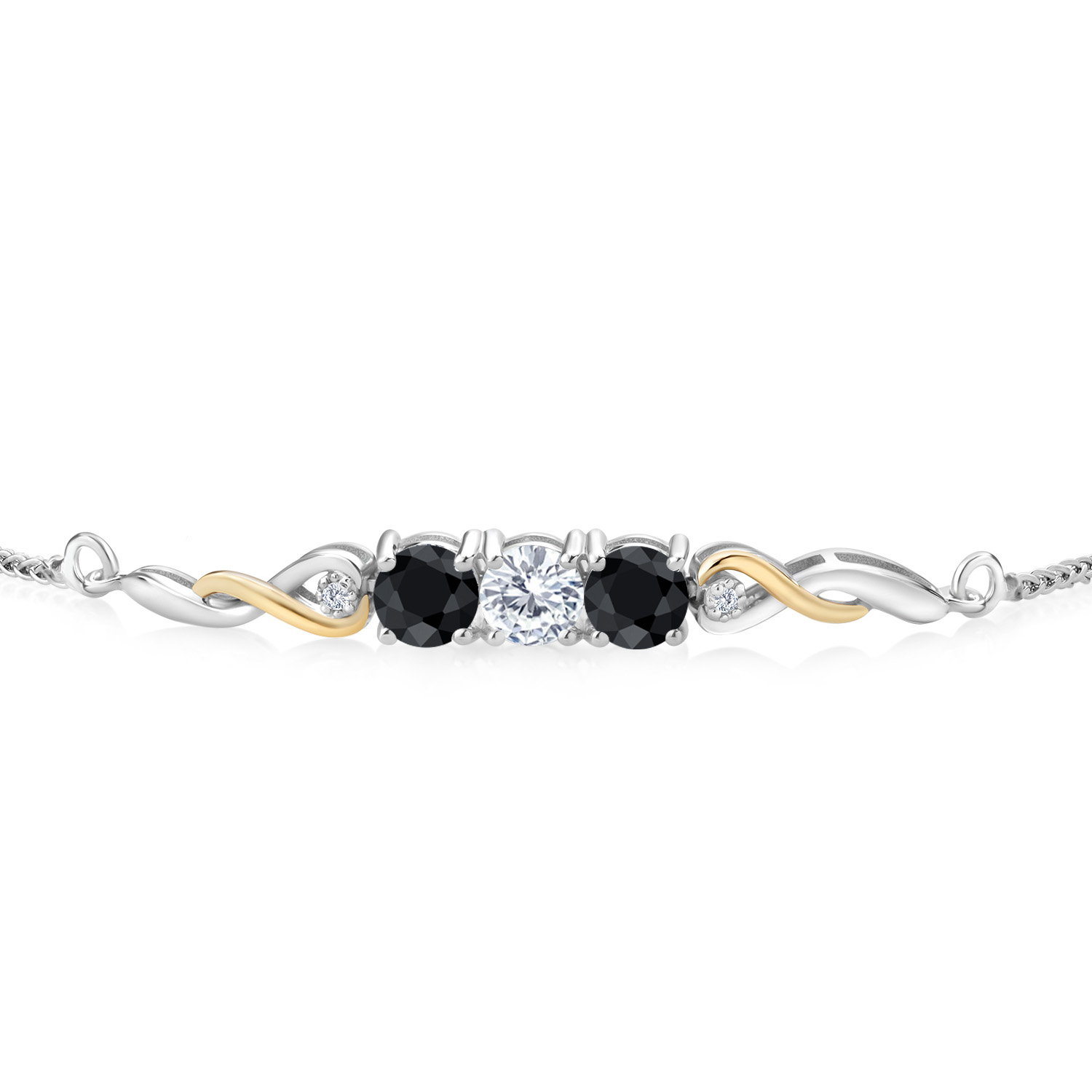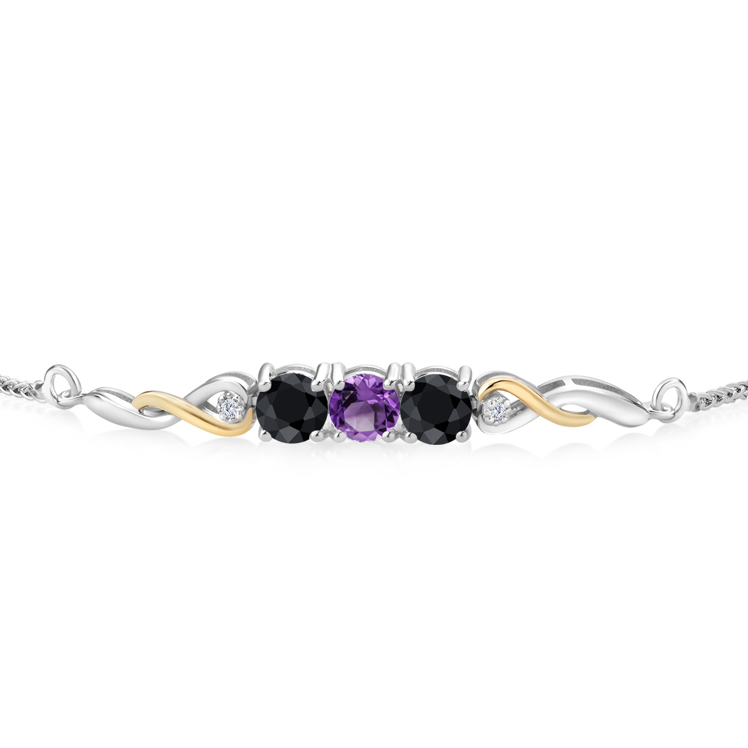 ELEGANT INFINITY DESIGN: Set in a graceful two-tone motif, the bracelet features 10K yellow gold infinity links twisting gently through polished 925 silver. Each side of the gemstone trio is accented with a white lab grown diamond and sculpted metalwork for added brilliance. With clean symmetry and modern movement, this bracelet blends heirloom charm with contemporary sparkle.