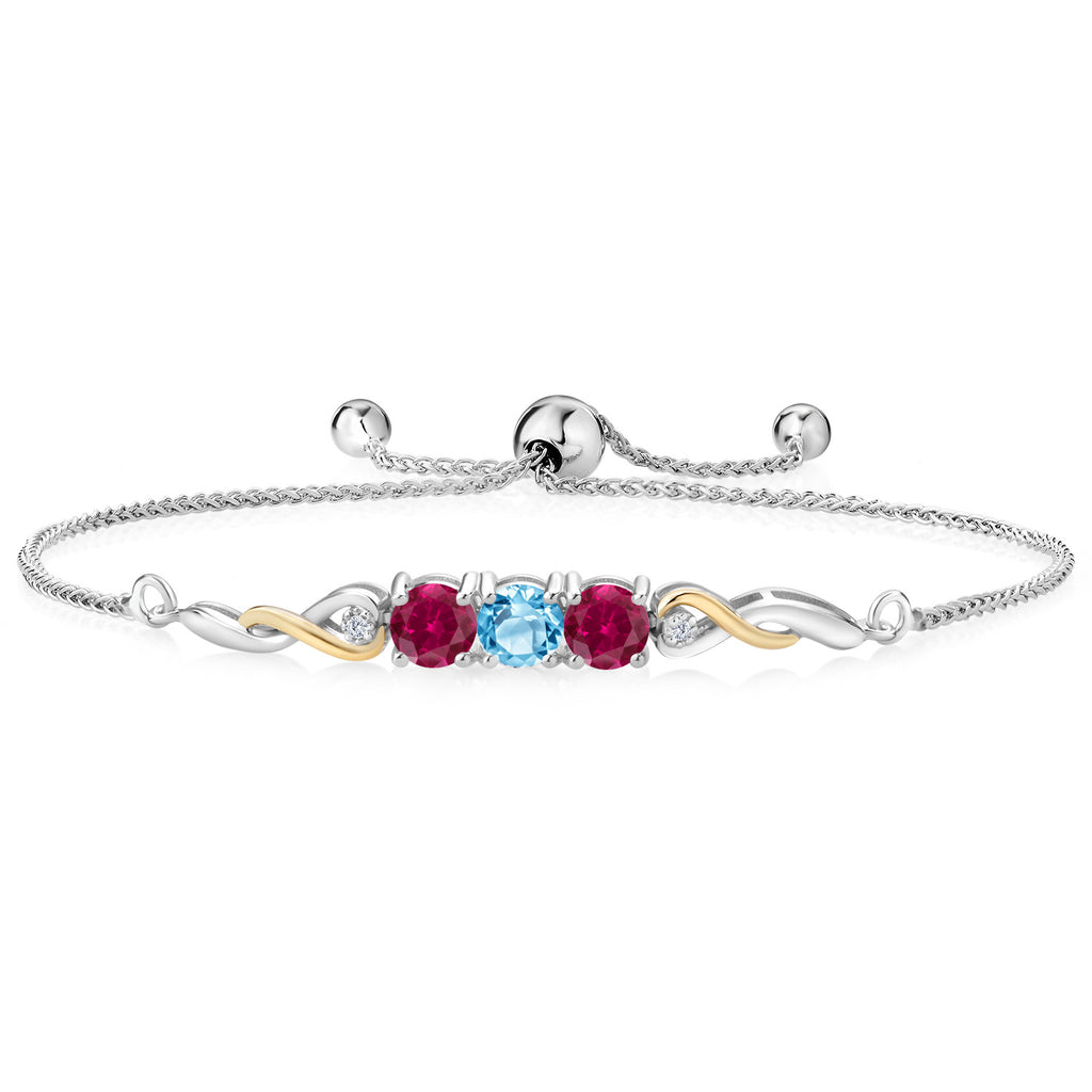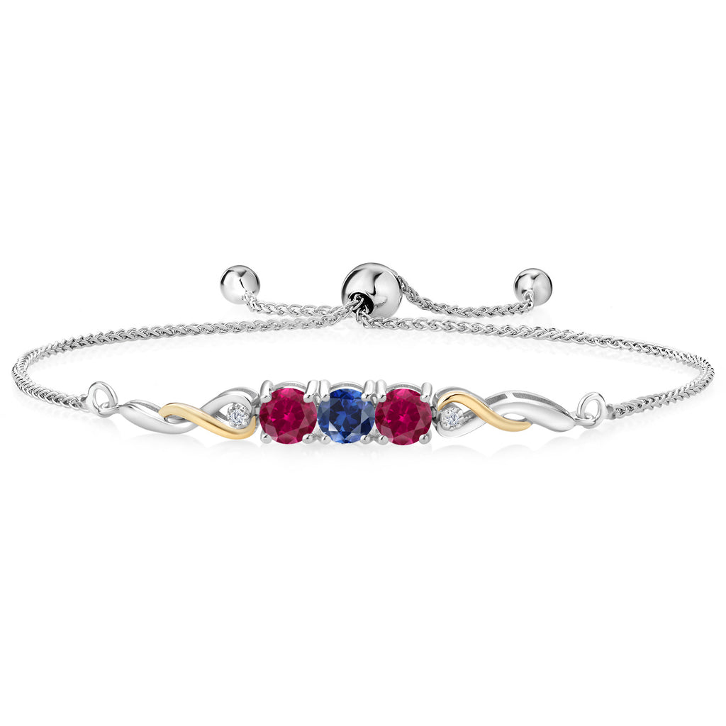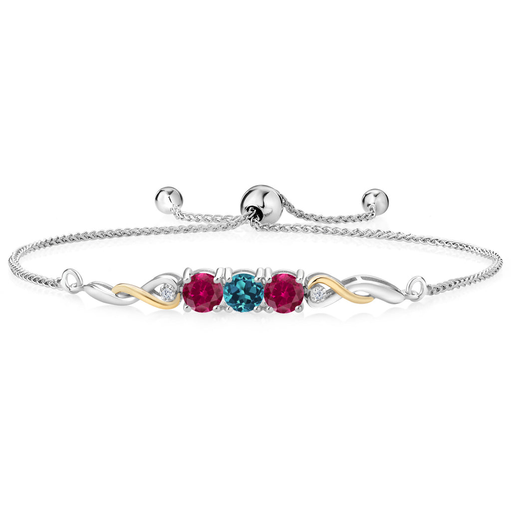 Two-Tone Gemstone Birthstone and Created ruby and Accent Lab Grown Diamond Infinity Tennis Bracelet For Women In 925 Silver and 10K Yellow Gold | Round 5MM and 1.3MM | Fully Adjustable Up to 9 Inch