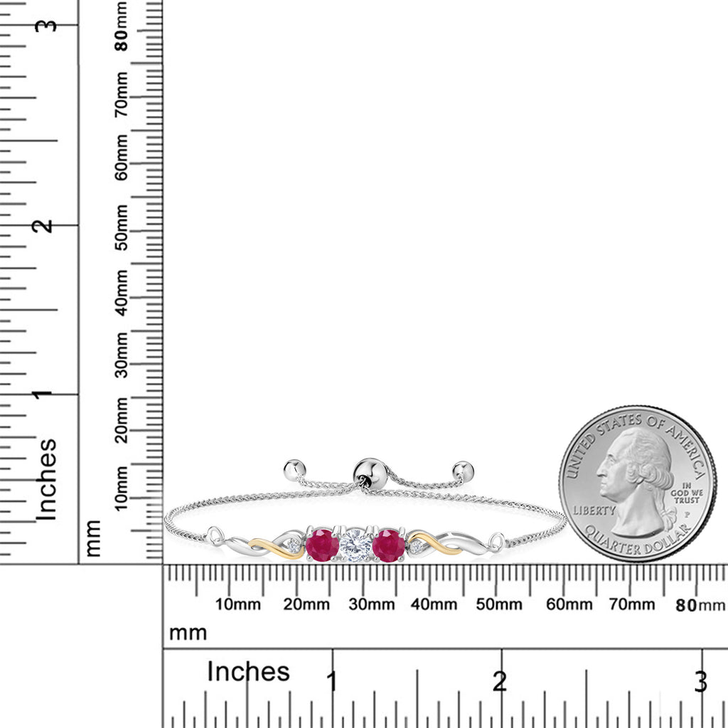 Two-Tone Gemstone Birthstone and Red Ruby and Accent Lab Grown Diamond Infinity Tennis Bracelet For Women In 925 Silver and 10K Yellow Gold | Round 5MM and 1.3MM | Fully Adjustable Up to 9 Inch