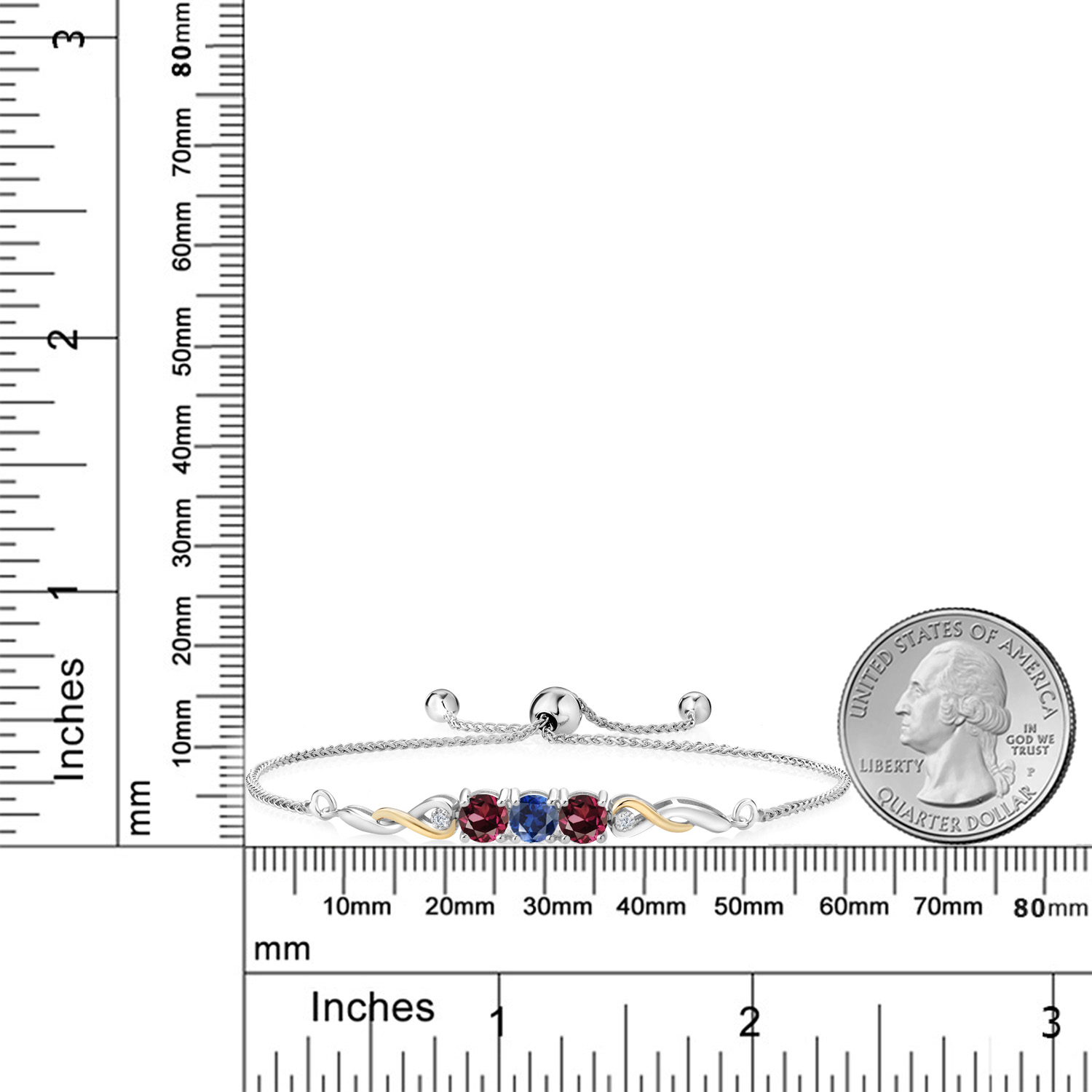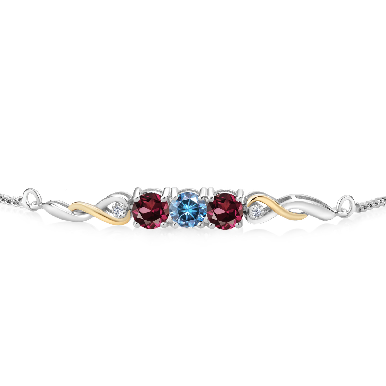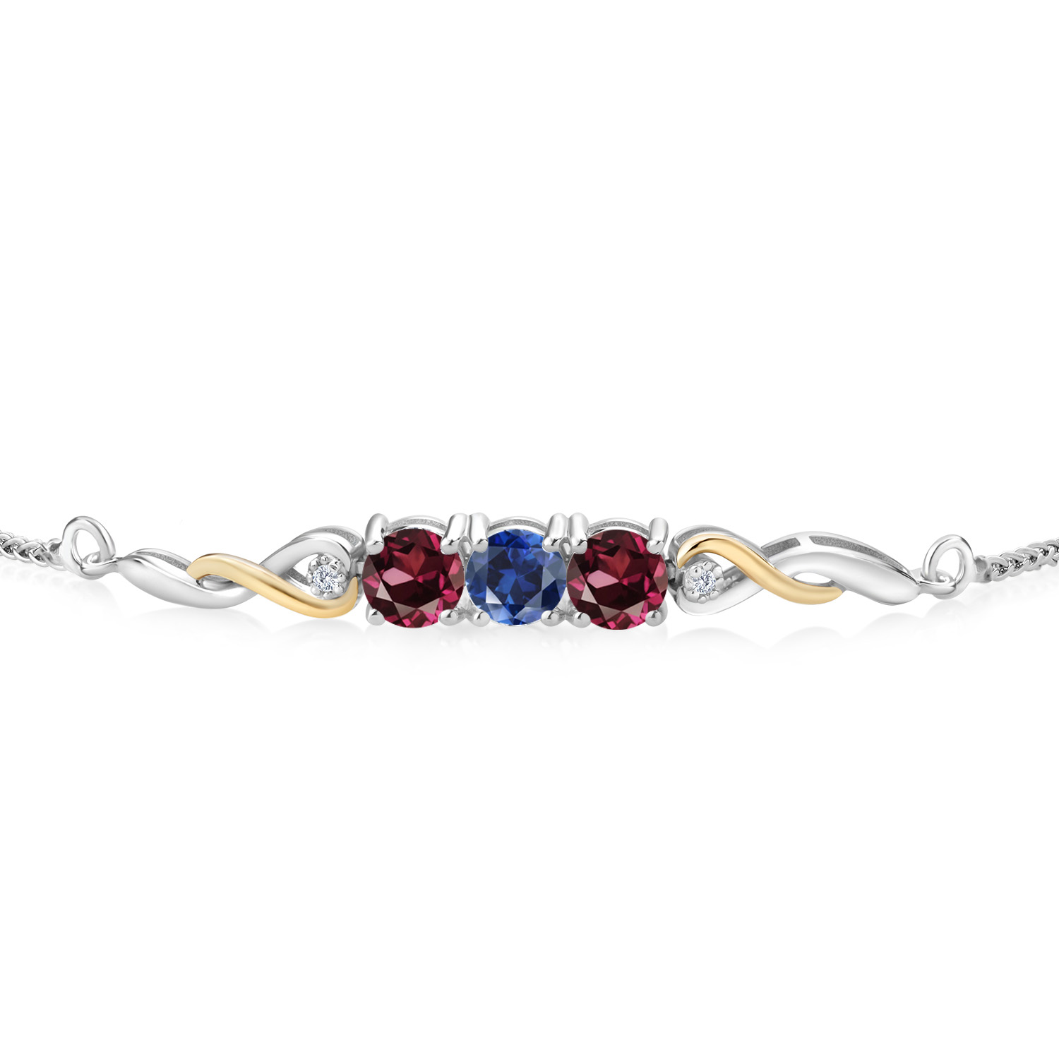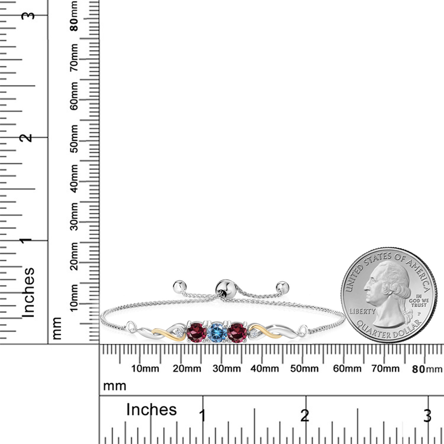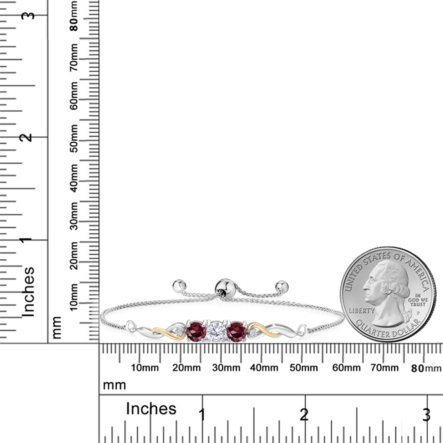 Two-Tone Gemstone Birthstone and Rhodolite Garnet and Accent Lab Grown Diamond Infinity Tennis Bracelet For Women In 925 Silver and 10K Yellow Gold | Round 5MM | Fully Adjustable Up to 9 Inch