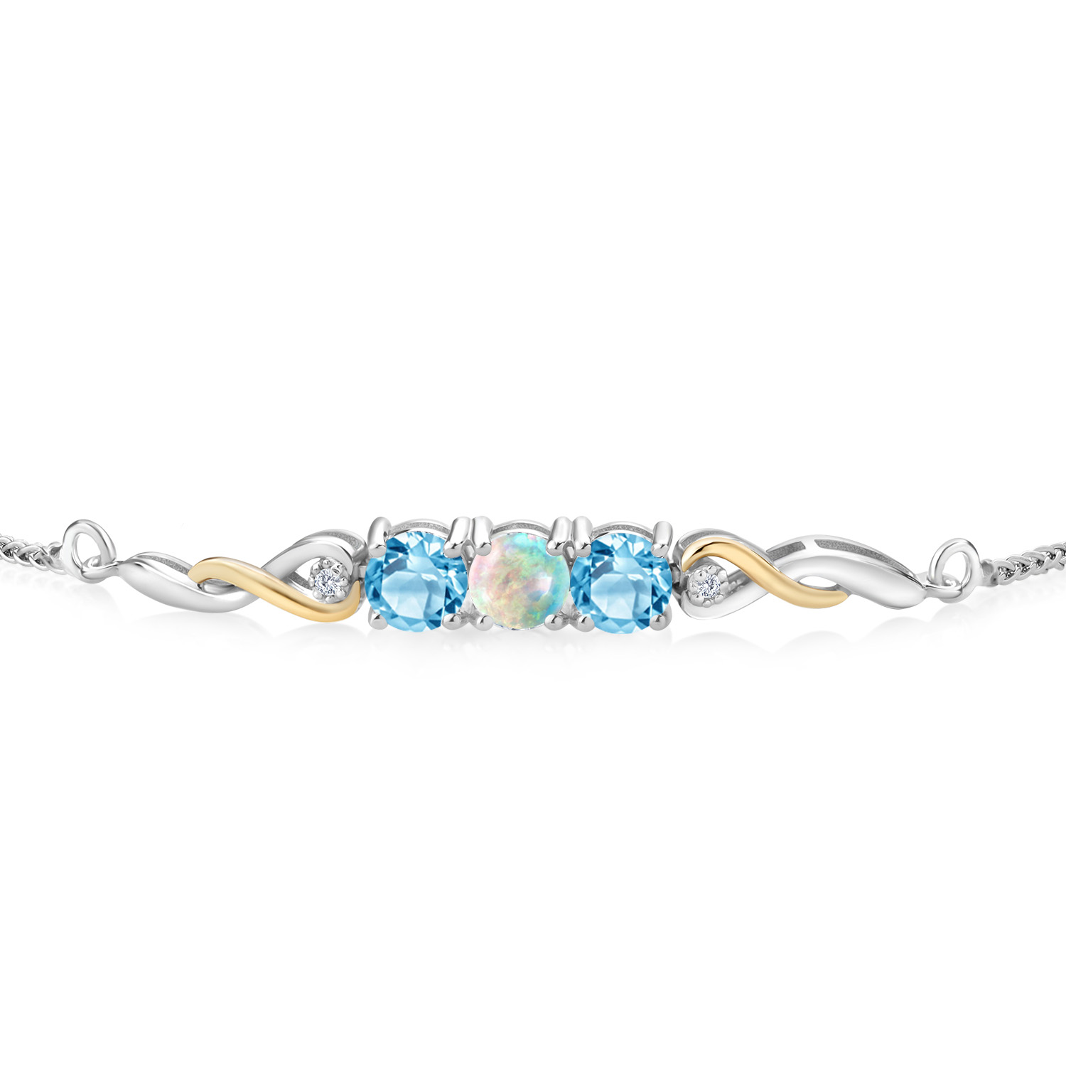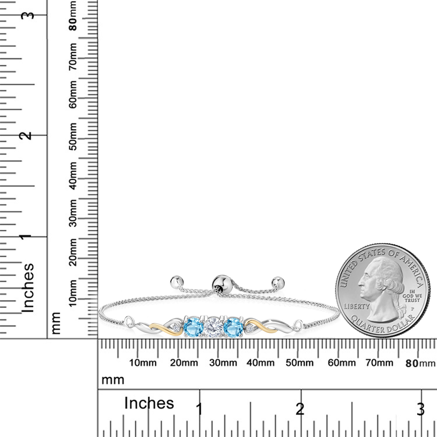Two-Tone Gemstone Birthstone and Swiss Blue Topaz and Accent Lab Grown Diamond Infinity Tennis Bracelet For Women In 925 Silver and 10K Yellow Gold | Round 5MM | Fully Adjustable Up to 9 Inch