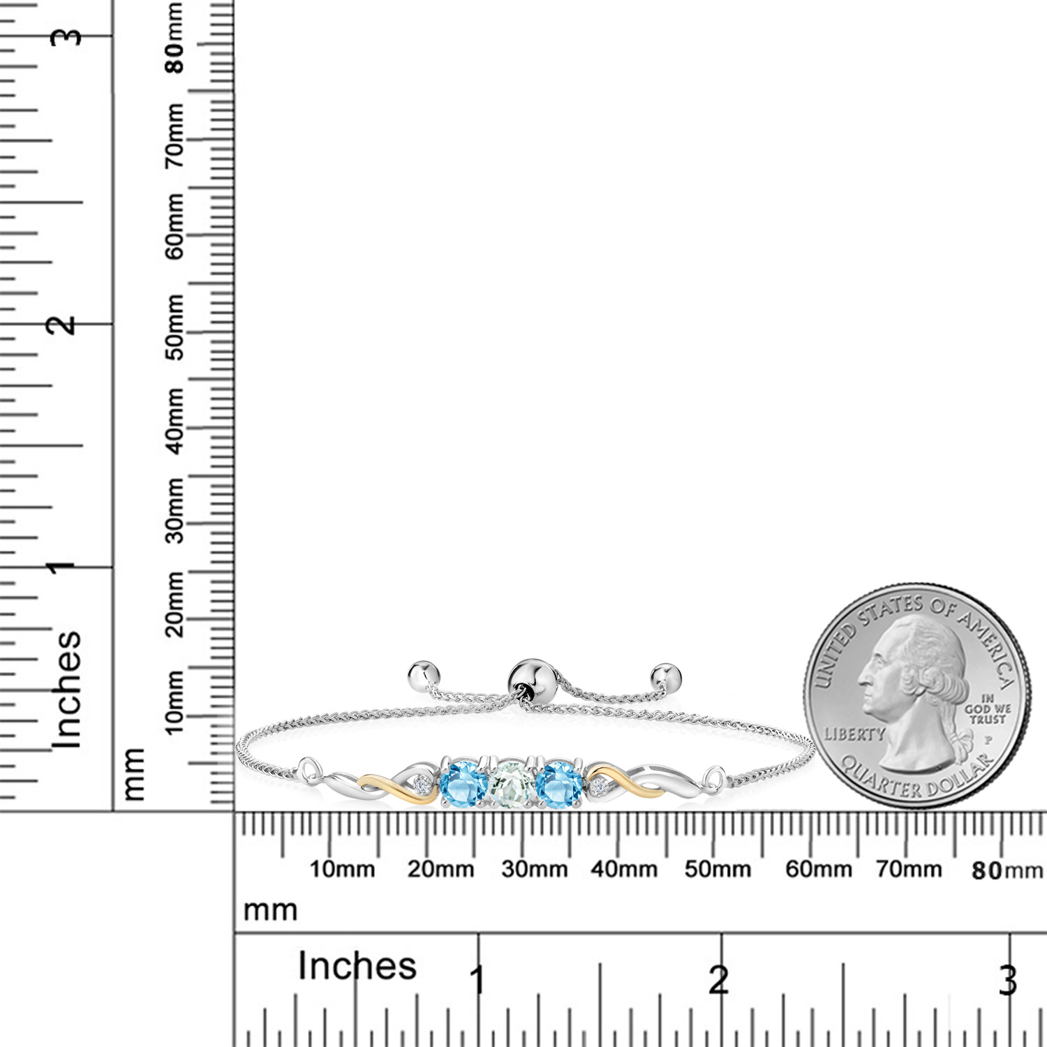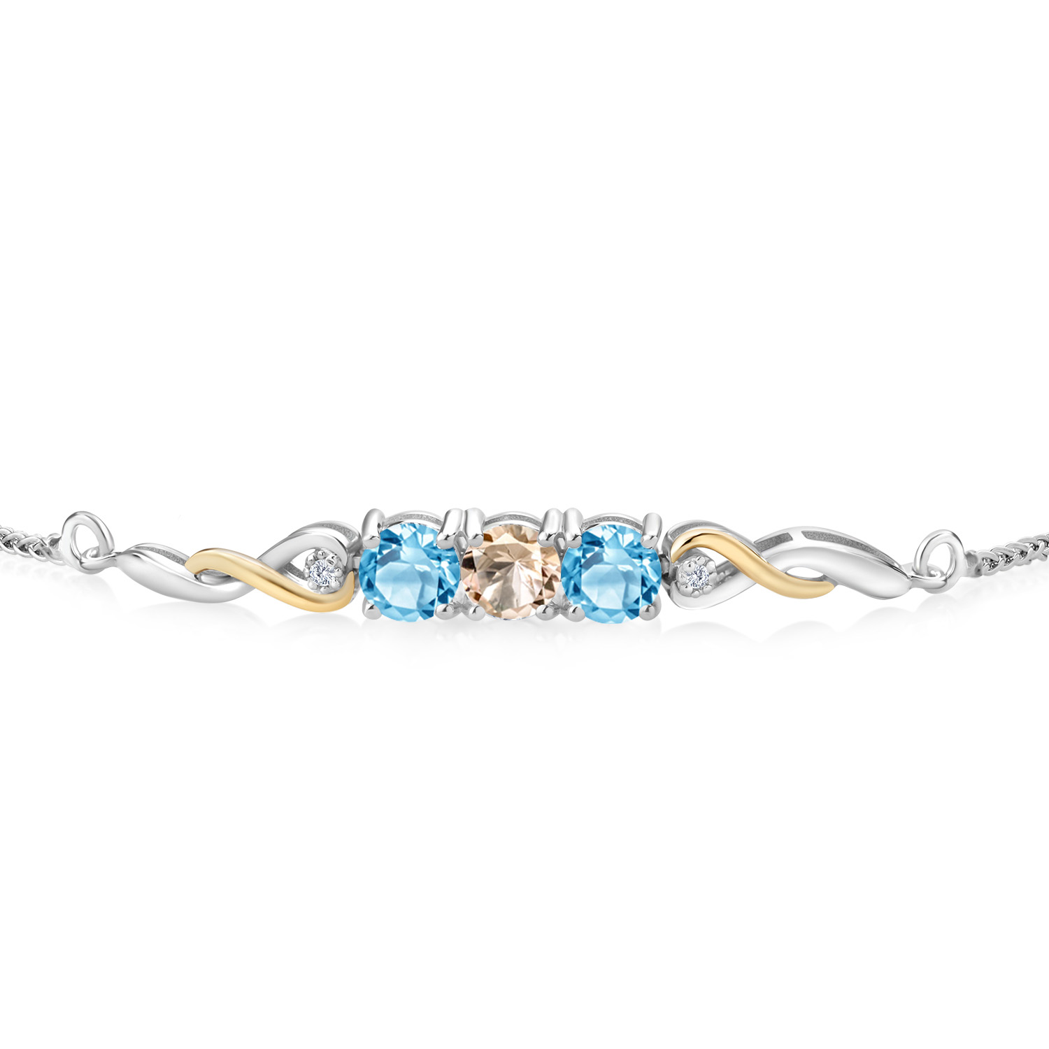 ELEGANT INFINITY DESIGN: Set in a graceful two-tone motif, the bracelet features 10K yellow gold infinity links twisting gently through polished 925 silver. Each side of the gemstone trio is accented with a white lab grown diamond and sculpted metalwork for added brilliance. With clean symmetry and modern movement, this bracelet blends heirloom charm with contemporary sparkle.