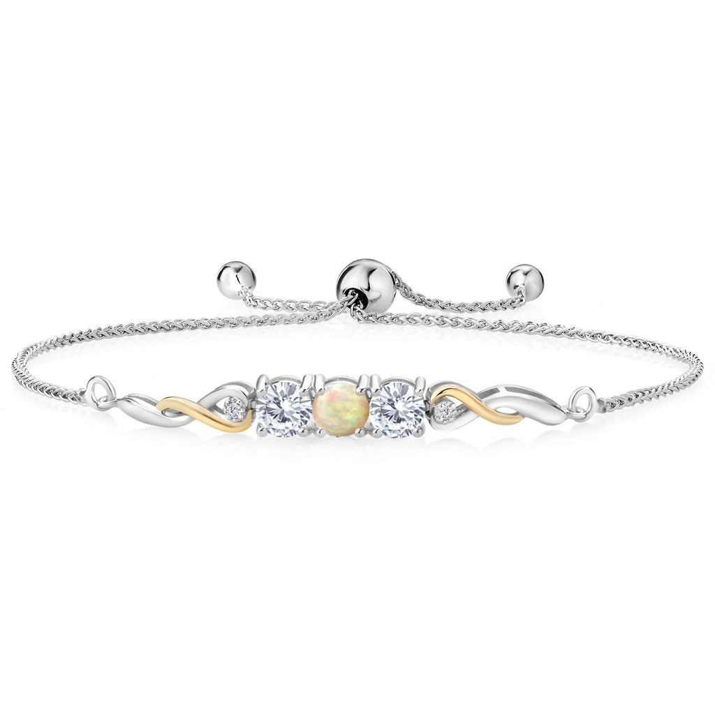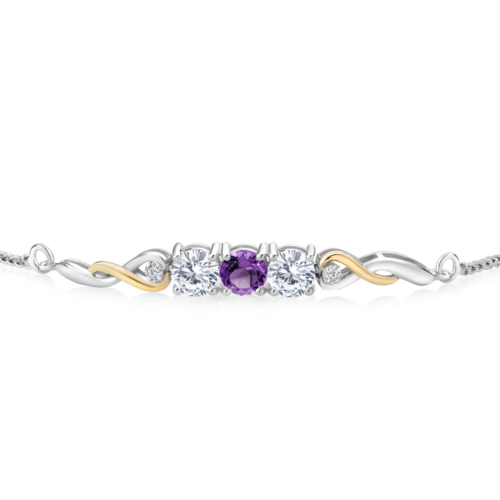 ELEGANT INFINITY DESIGN: Set in a graceful two-tone motif, the bracelet features 10K yellow gold infinity links twisting gently through polished 925 silver. Each side of the gemstone trio is accented with a white lab grown diamond and sculpted metalwork for added brilliance. With clean symmetry and modern movement, this bracelet blends heirloom charm with contemporary sparkle.