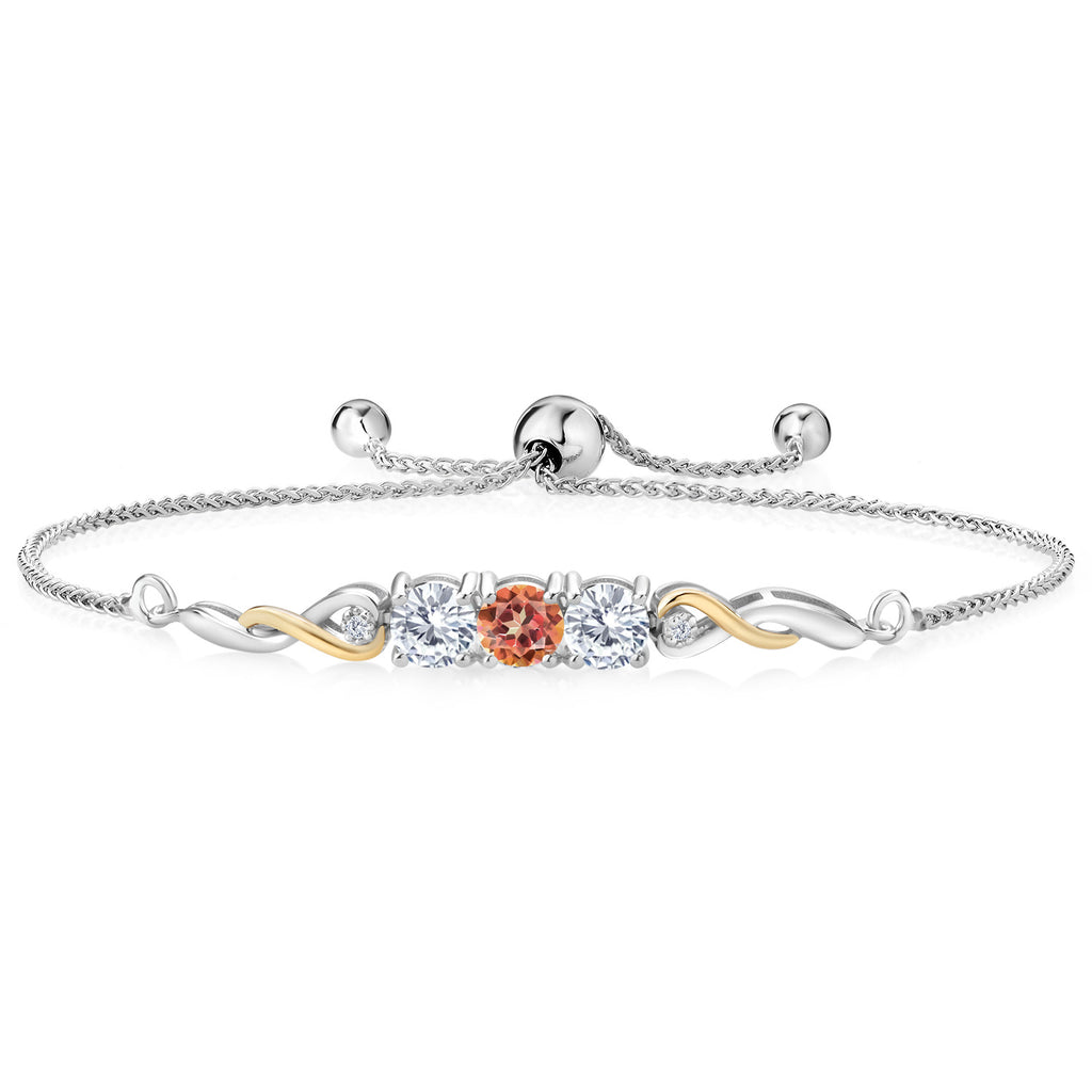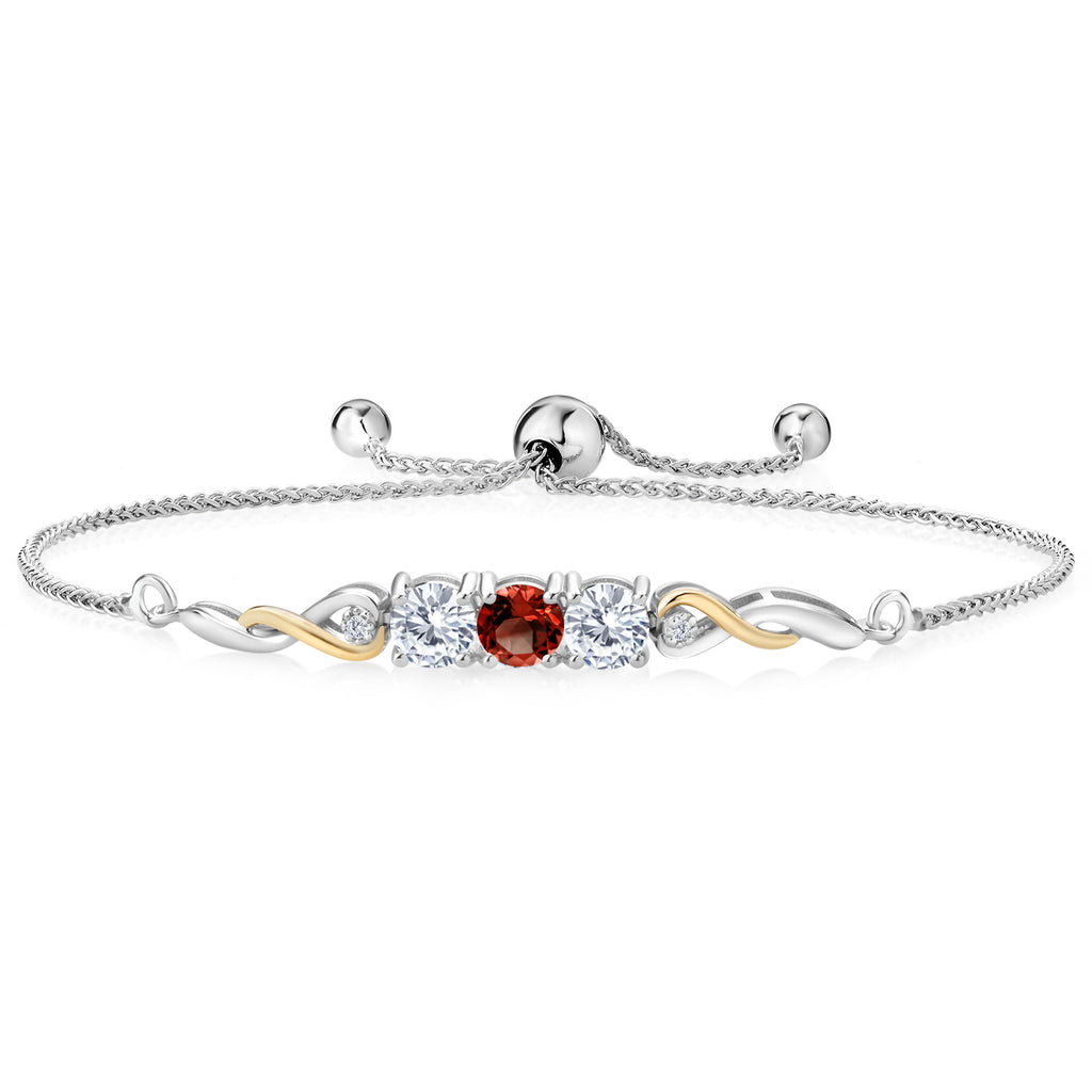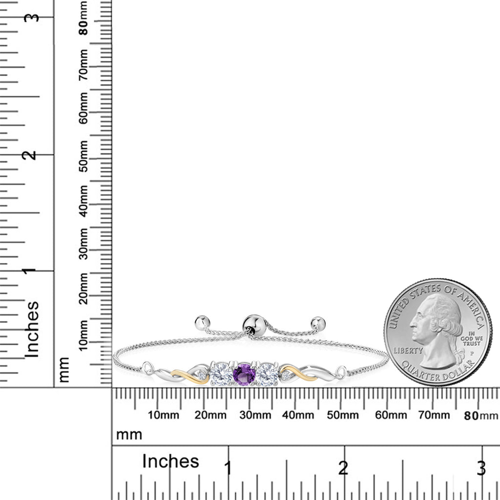 Two-Tone Gemstone Birthstone and White Moissanite and Accent Lab Grown Diamond Infinity Tennis Bracelet For Women In 925 Silver and 10K Yellow Gold | Round 5MM | Fully Adjustable Up to 9 Inch