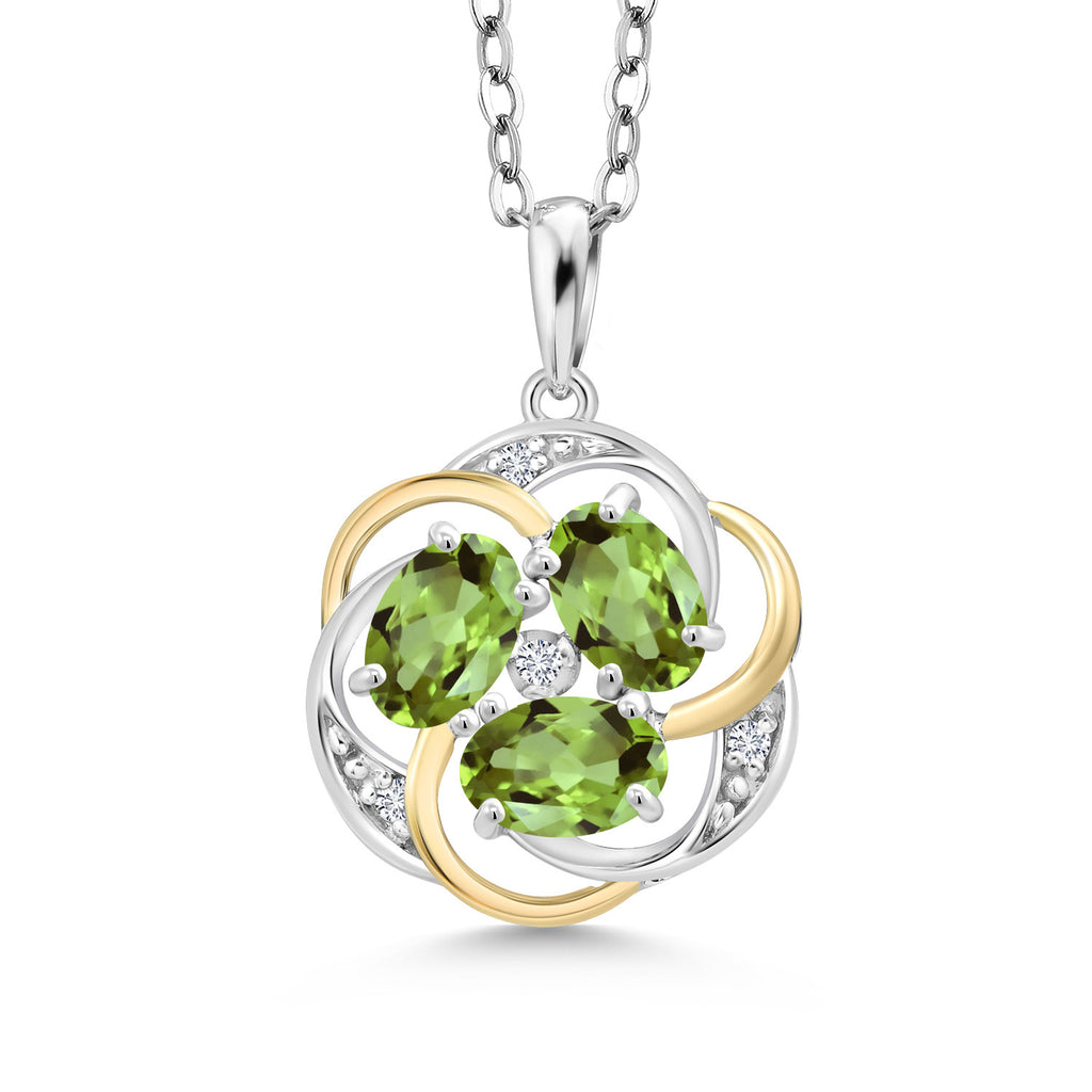 Two-Tone Intertwined Infinity Pendant Necklace for Women | 925 Silver and 10K Yellow Gold | Gemstone Birthstone with White Lab Grown Diamond | Oval 6X4MM and Round 1.3MM | 18 Inch Chain