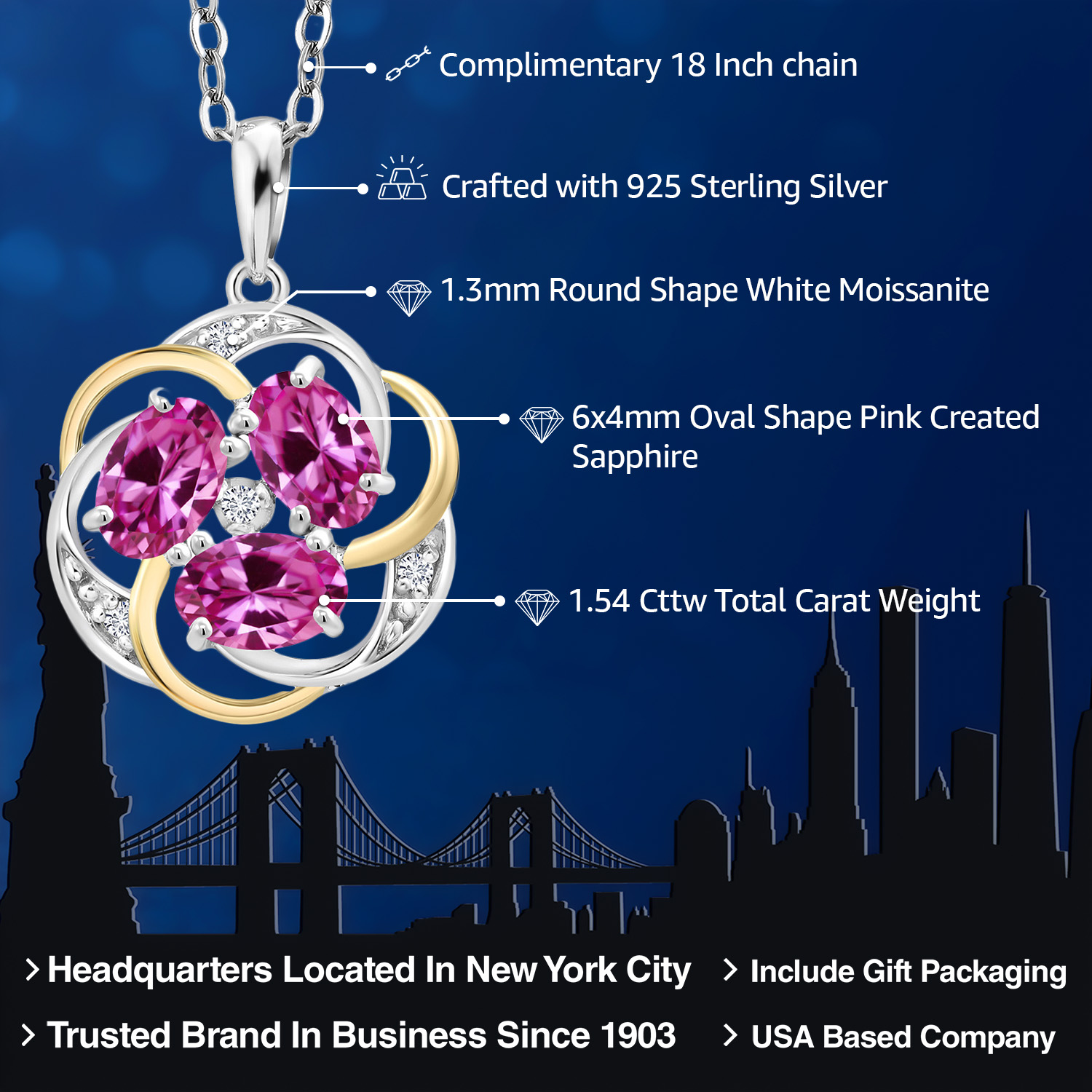 Two-Tone Intertwined Infinity Pendant Necklace for Women | 925 Silver and 10K Yellow Gold | Gemstone Birthstone with White Moissanite Accent | Oval 6X4MM and Round 1.3MM | 18 Inch Chain