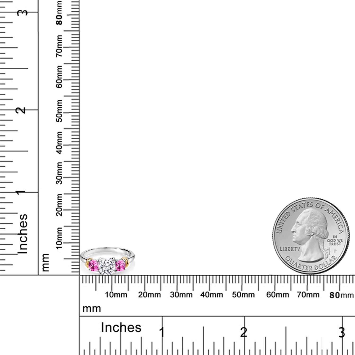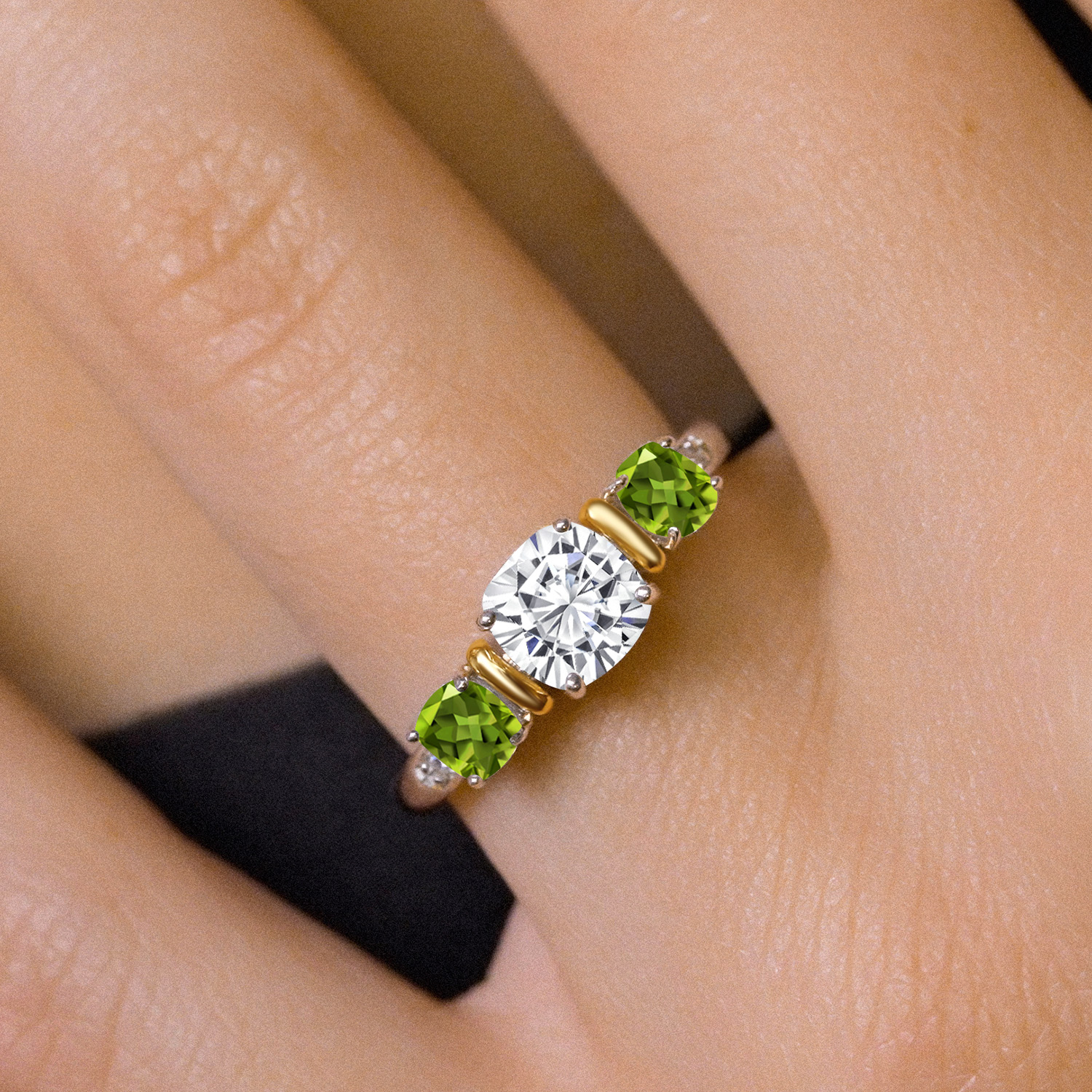 CUSHION CUT BRILLIANCE: Captivate hearts with the mesmerizing cushion-cut 6MM White Moissanite, paired with two 4MM gemstone birthstones. Each gemstone is hand-selected for its exceptional clarity and brilliance. The cushion shape, known for its rounded corners and brilliant facets, ensures maximum light reflection, enhancing the gemstone's natural sparkle and creating a captivating play of light that draws attention and admiration.