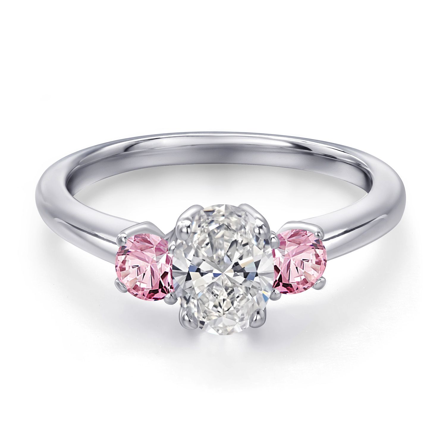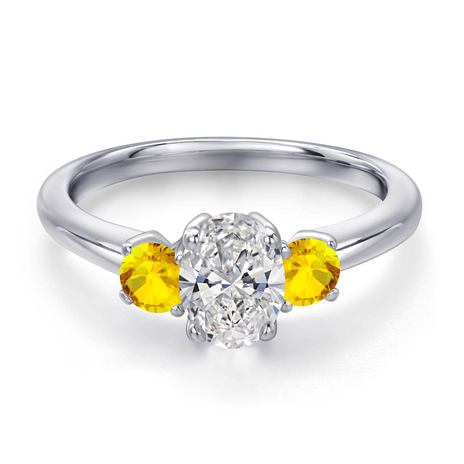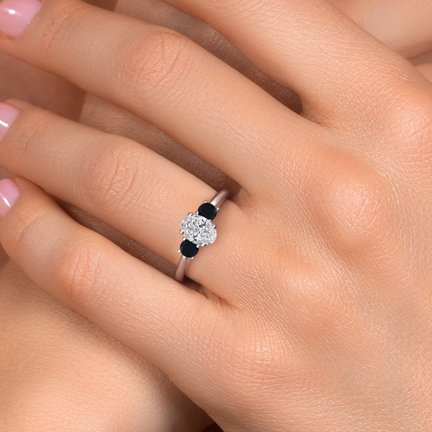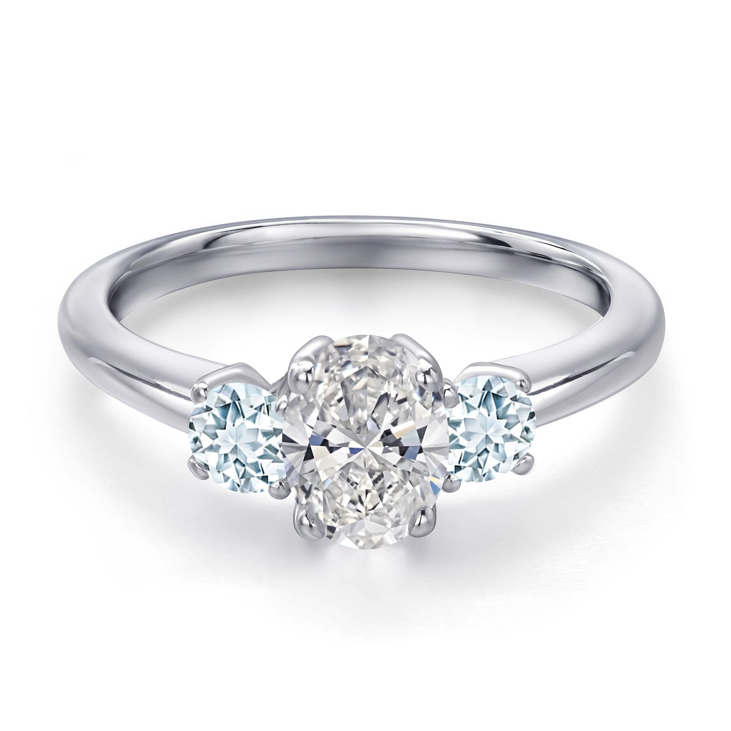 OVAL 7X5MM LAB GROWN DIAMOND BRILLIANCE: This engagement ring showcases an exquisite oval-shaped 7X5MM white lab-grown diamond, renowned for its unparalleled brilliance and eco-friendly origins. The oval cut enhances the diamond's natural sparkle, creating a captivating dance of light that symbolizes eternal love. Choose from a selection of accent round 3MM birthstone gemstones to personalize this piece, making it a truly unique expression of your affection.