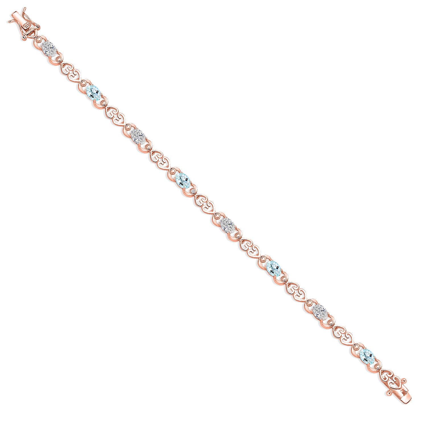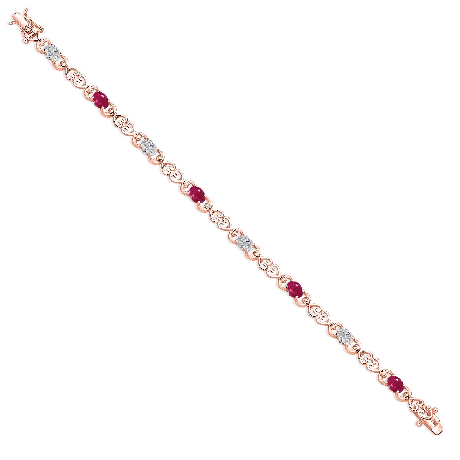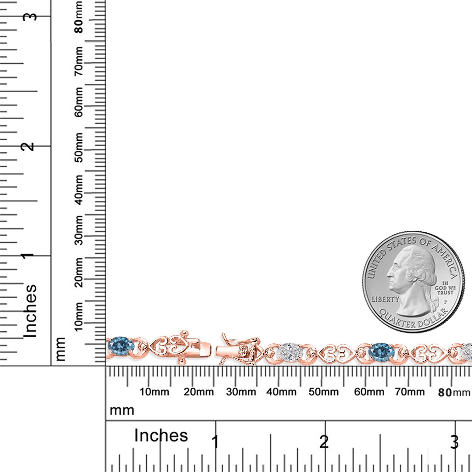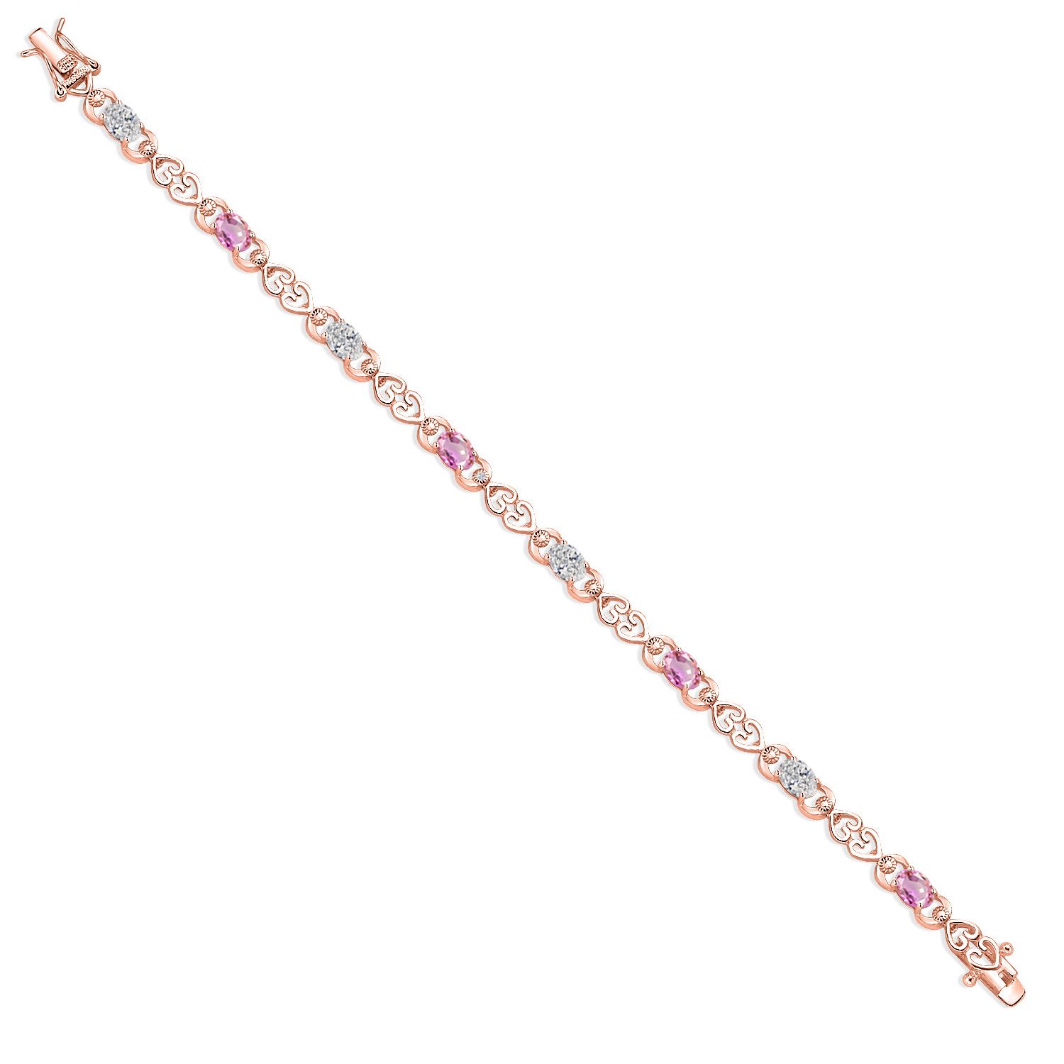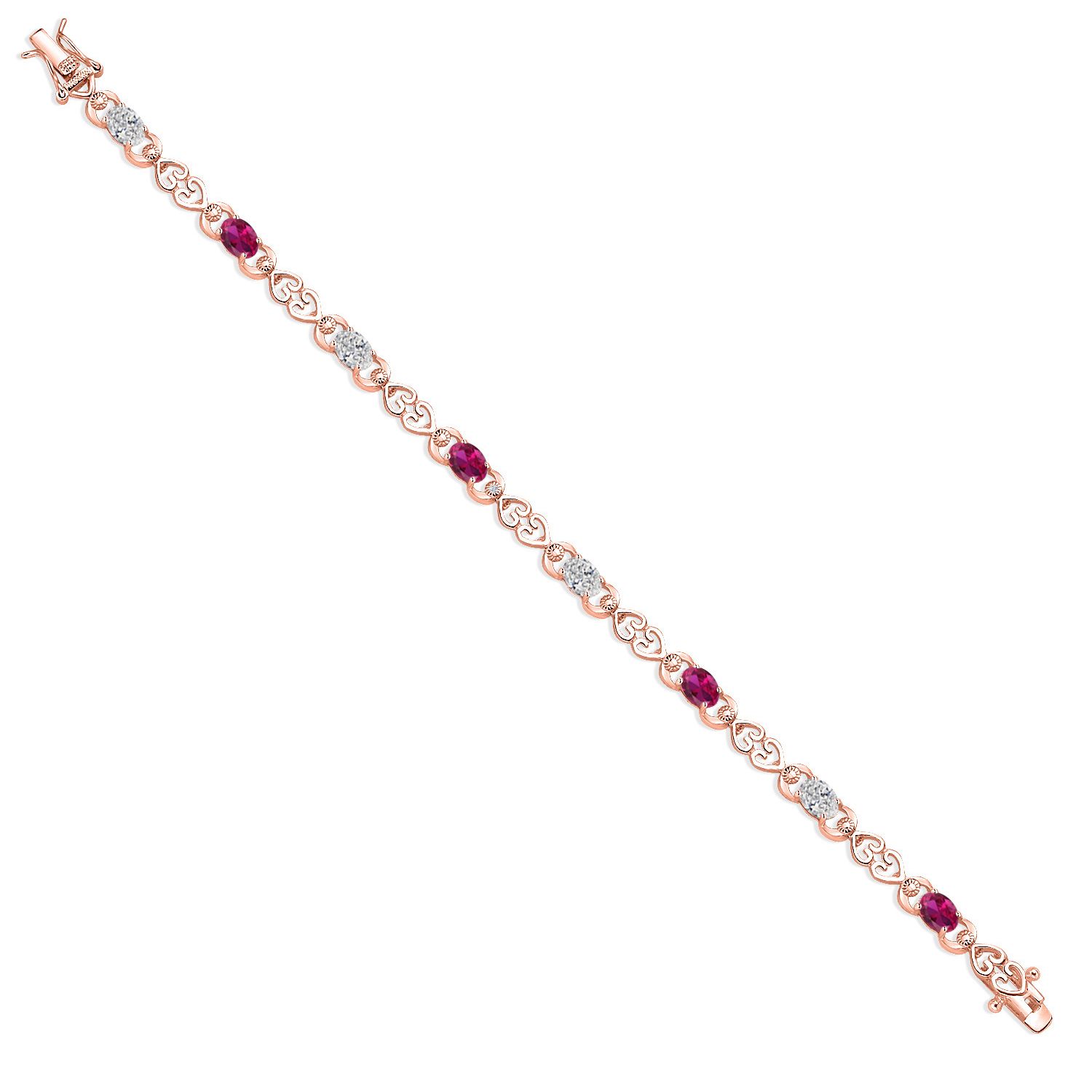 White Lab Grown Diamond and Gemstone Birthstone Heart Link Tennis Bracelet for Women | 18K Rose Gold Plated Silver | Oval 6X4MM | 7.25 Inch Length | Double Locking Fold Over Clasp