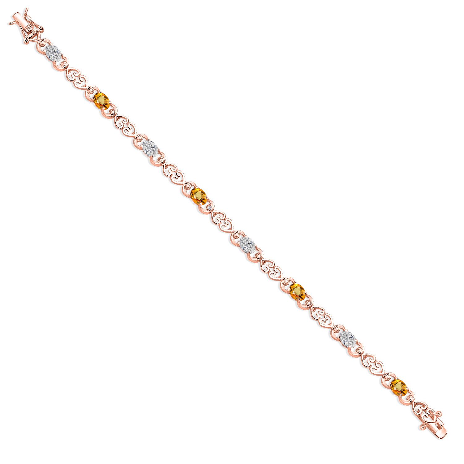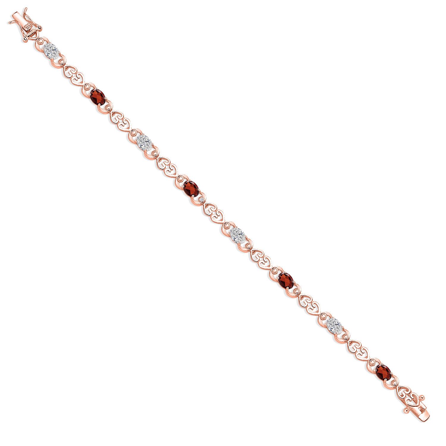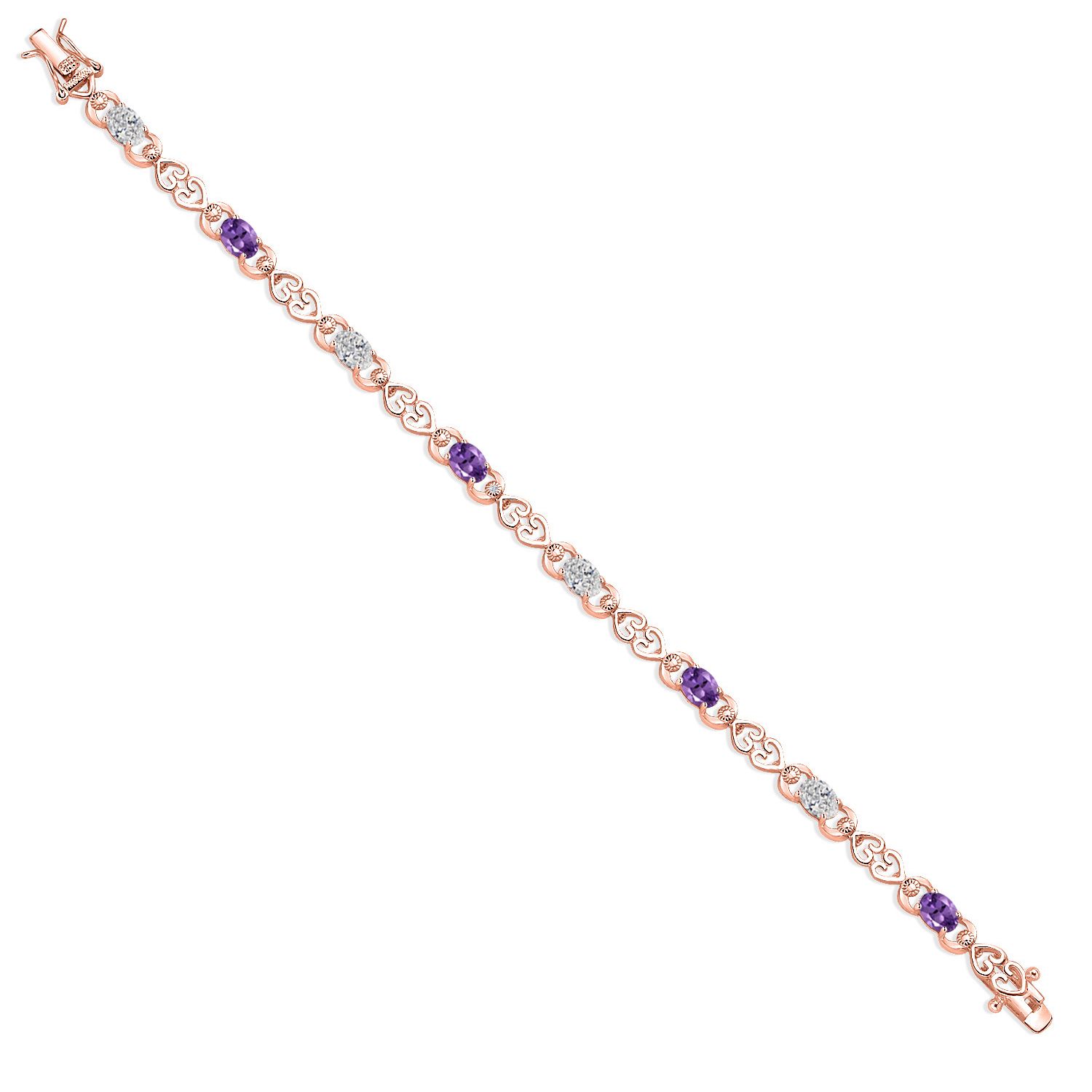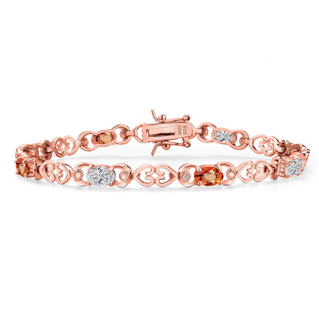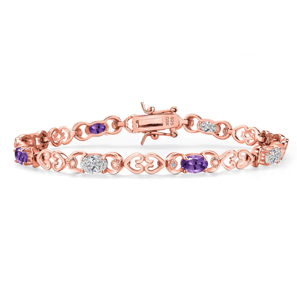 White Lab Grown Diamond and Gemstone Birthstone Heart Link Tennis Bracelet for Women | 18K Rose Gold Plated Silver | Oval 6X4MM | 7.25 Inch Length | Double Locking Fold Over Clasp
