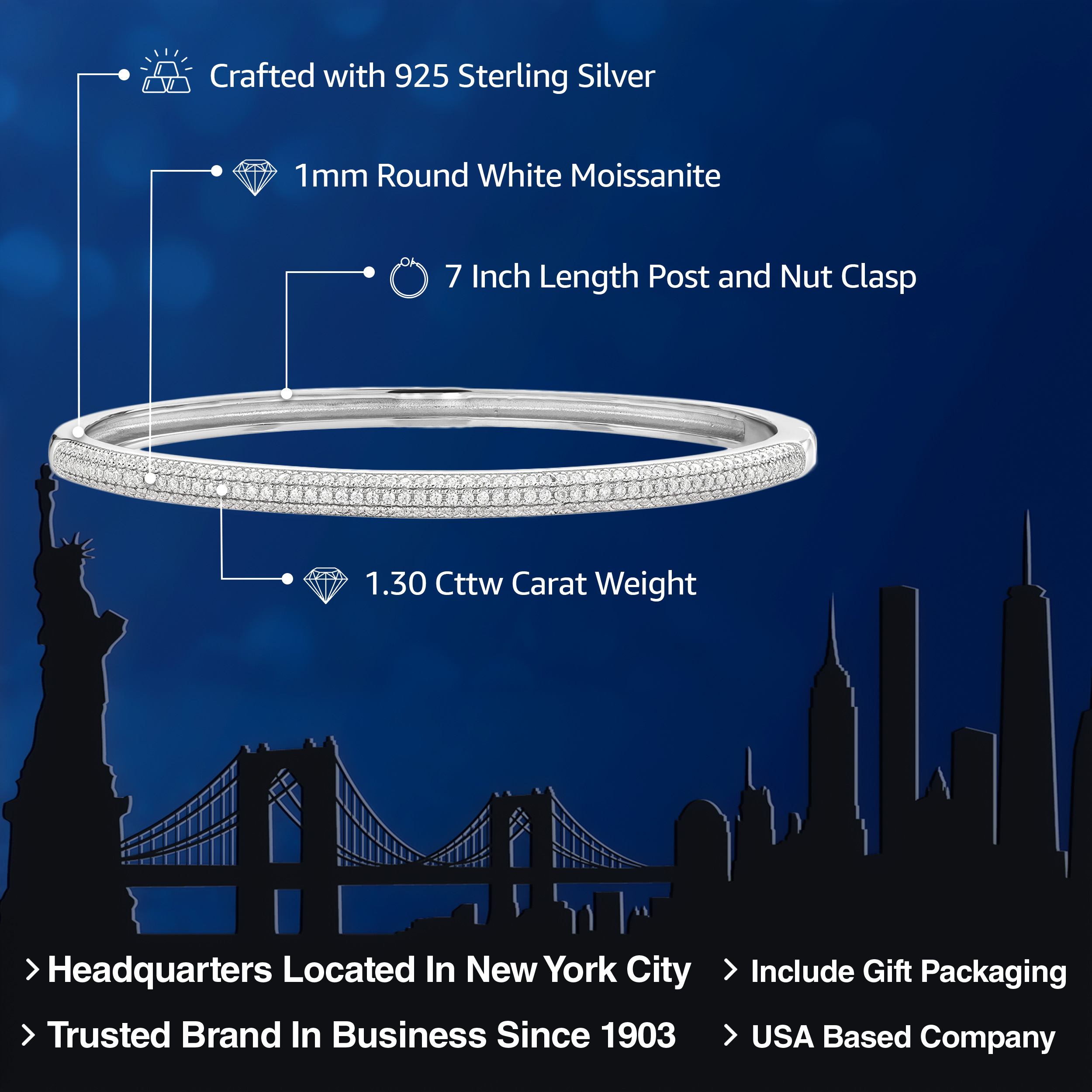 DAZZLING MOISSANITE BRILLIANCE: Elevate your wrist game with this stunning bangle bracelet featuring 1.30 Carat Total Weight (Cttw) of moissanite stones that rival the brilliance of diamonds. The moissanite's captivating sparkle adds a touch of elegance to any outfit.