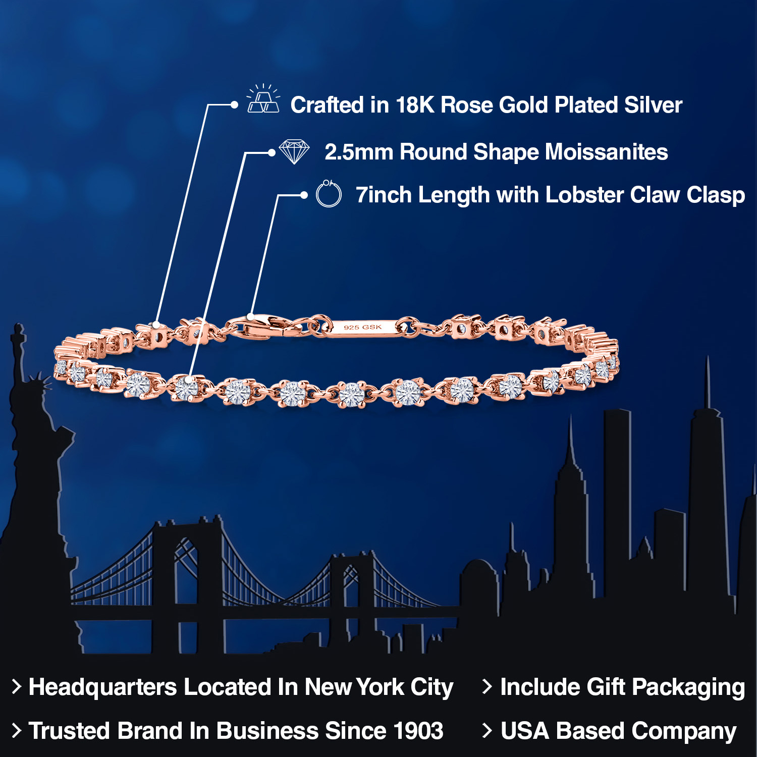 DAZZLING BRILLIANCE: Adorn your wrist with our exquisite 925 sterling silver with 925 stamp tennis bracelet, or opt for the luxurious 18k gold plated version. Both feature a radiant 2.5MM White Moissanite center stone and a total carat weight of 1.76 Cttw.